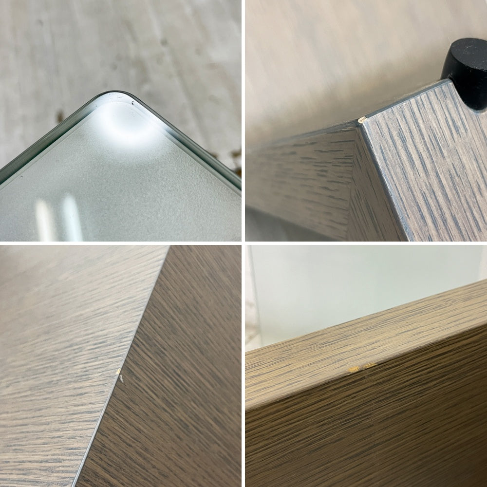 今回入荷したのは、タペストリー(フロスト)ガラスの天板にグレーオークカラーのベースの仕様。