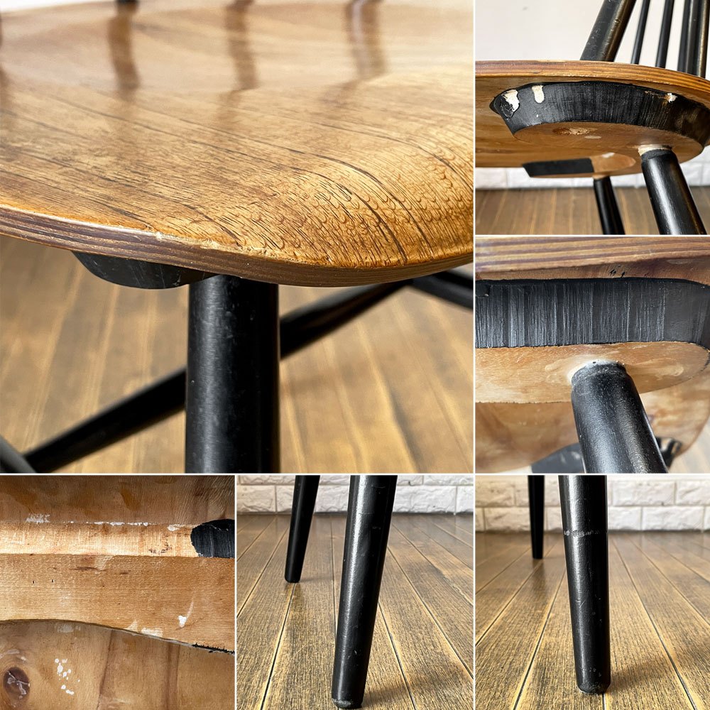 使用や経年に伴い、細かな擦れや傷、打痕、ペイントロス、座面を中心に取り切れない汚れが散見されますが、ビンテージの風合いとしてお楽しみ頂ける程度です。また、ロゴシールが欠品しておりますが、ASKO社における盾型のシール跡を確認する事が出来ます。その他、脚部に締め直しのボンド痕が見受けられますが、ぐらつき等に問題はございません。これからもまだまだ実用頂けるコンディションを保っております。