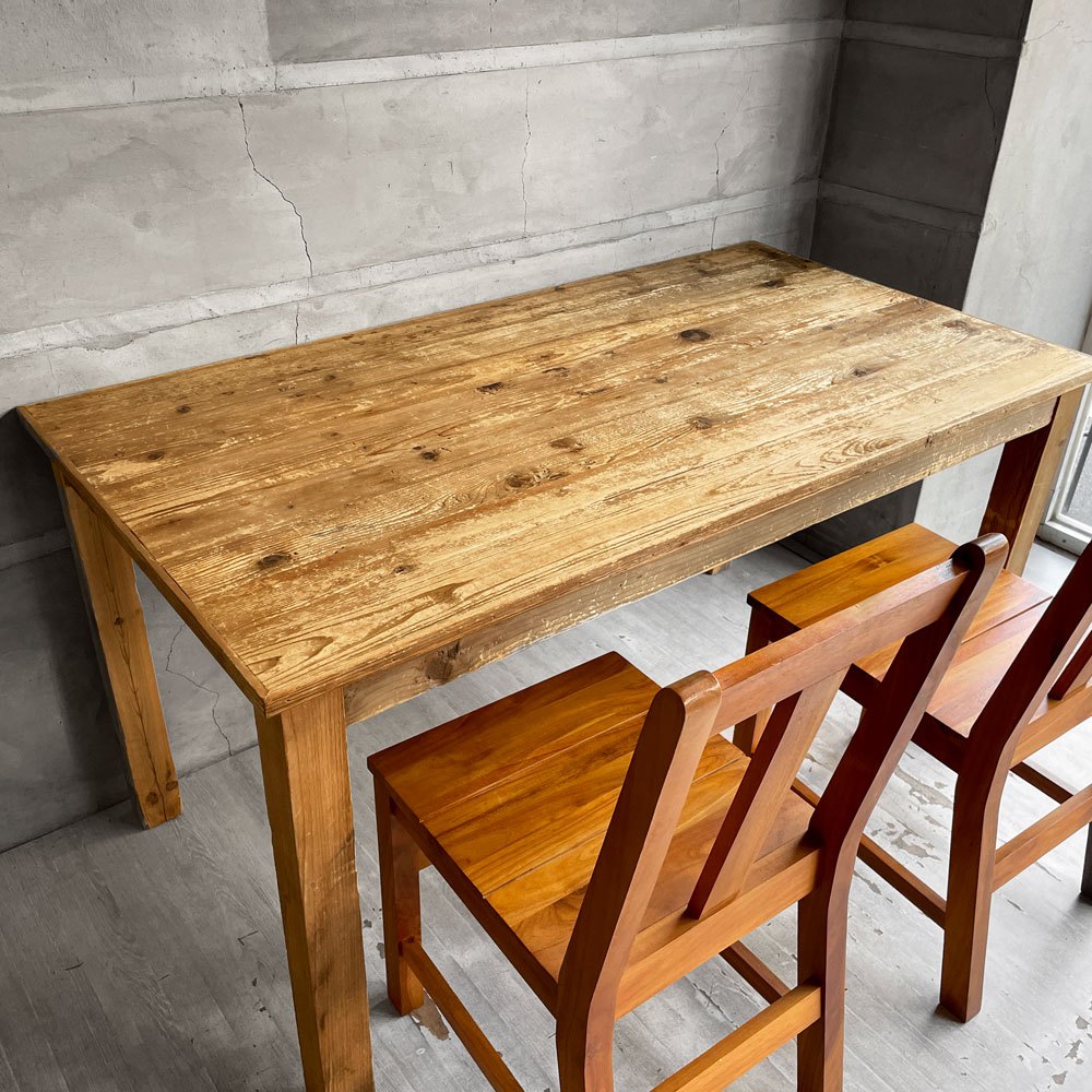 木材の風合いが前面に出た味わい深いダイニングテーブルです。