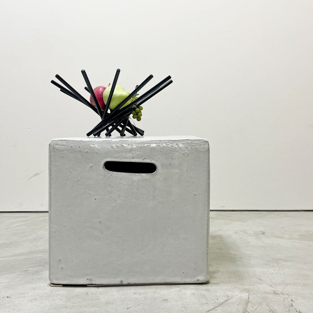 彼がデザインを手掛けたこのアイテムは本体がコンクリートでありながら、まるで白の釉薬を塗った陶器の様な上品な佇まい。
