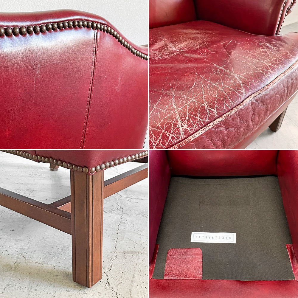ポッタリーバーン Pottery Barn ウイングバックソファ 1人掛け ラウンジチェア 本革 ワインレッド USビンテージ 〓