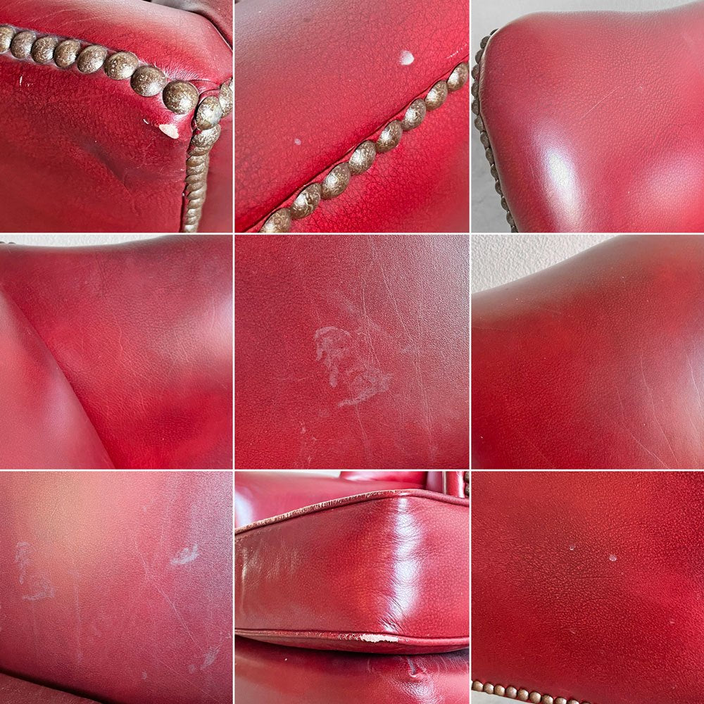 こちらはビンテージのお品物です。レザーには全体的に使用・経年に伴う傷や擦れ、軽微な破れ、若干の染みやペイント痕がございます。また、座面部分にひび割れがやや目立ちます。その他、脚部にも傷や擦れが見受けられるとともに、スタッズ(鋲)にくすみがございます。上記のようなダメージはございますが、着座使用に支障となる箇所はございません。ビンテージ品ならではの風合いをお楽しみいただきながらまだまだ実用いただけるコンディションを保っております。