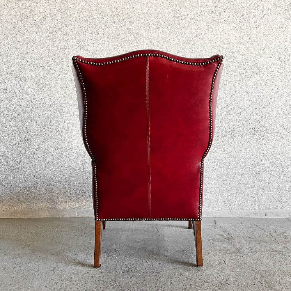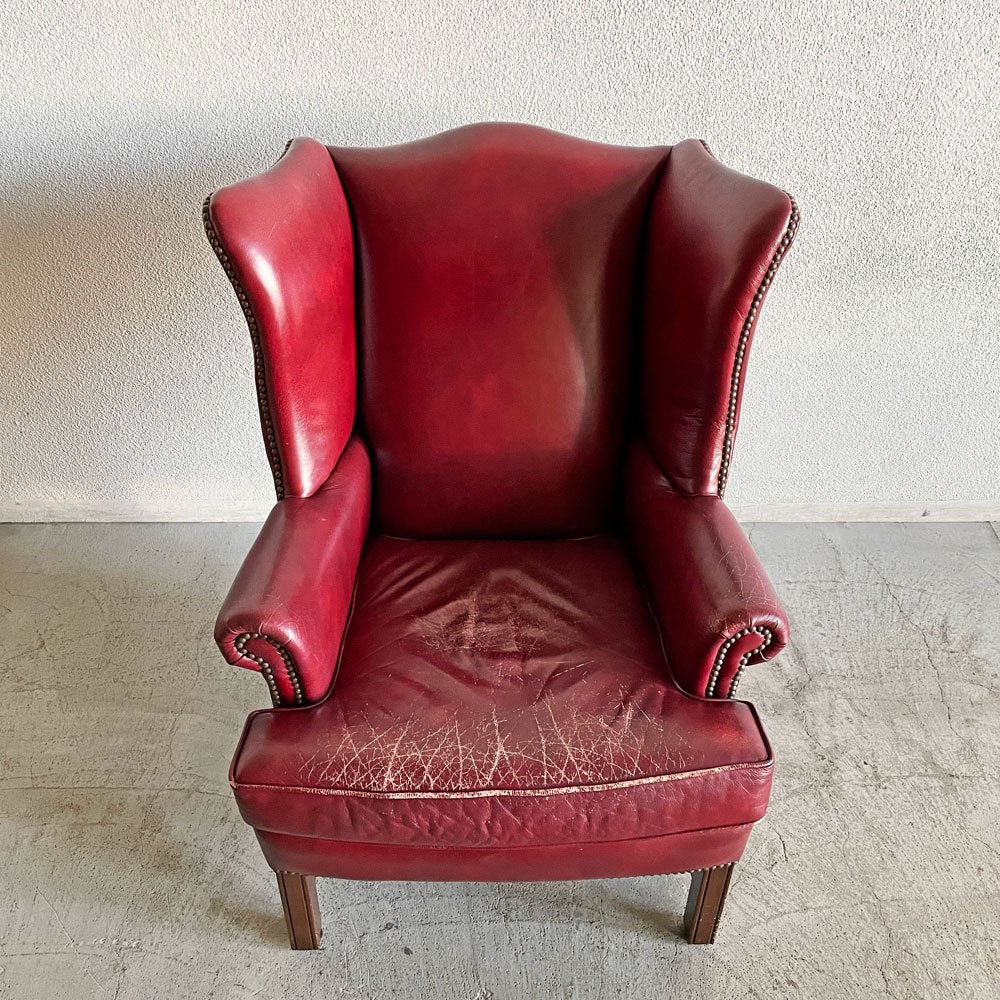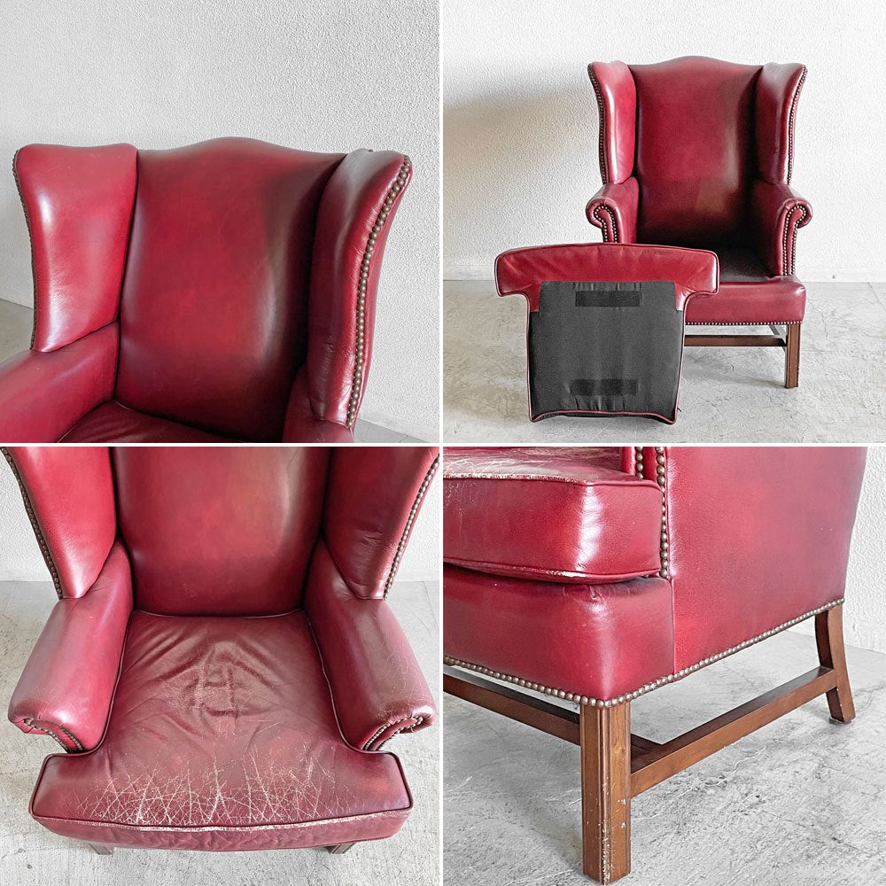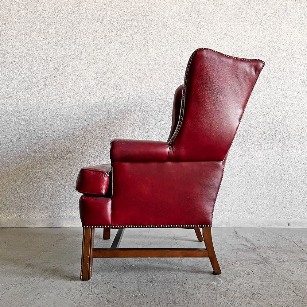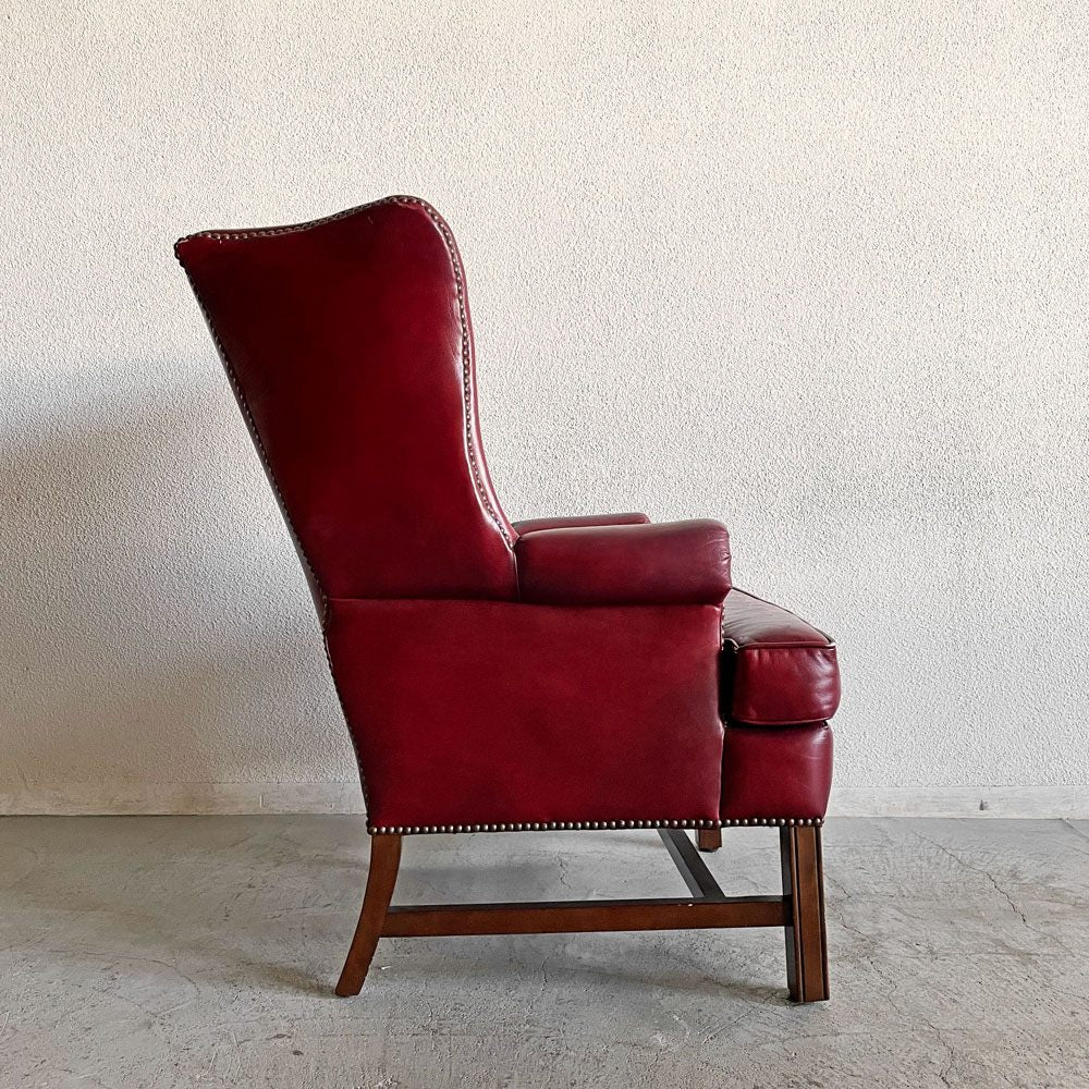 ポッタリーバーン Pottery Barn ウイングバックソファ 1人掛け ラウンジチェア 本革 ワインレッド USビンテージ ~時を重ねた味わい深い魅力~