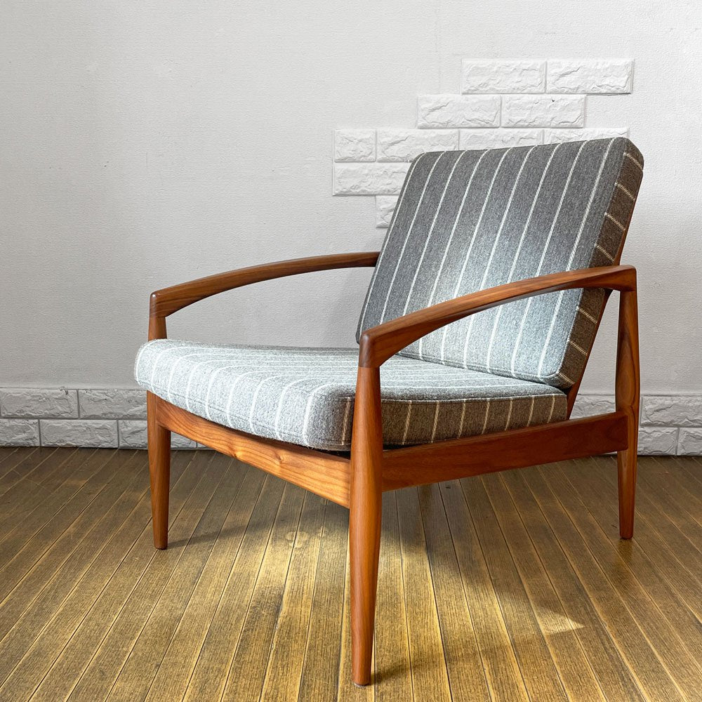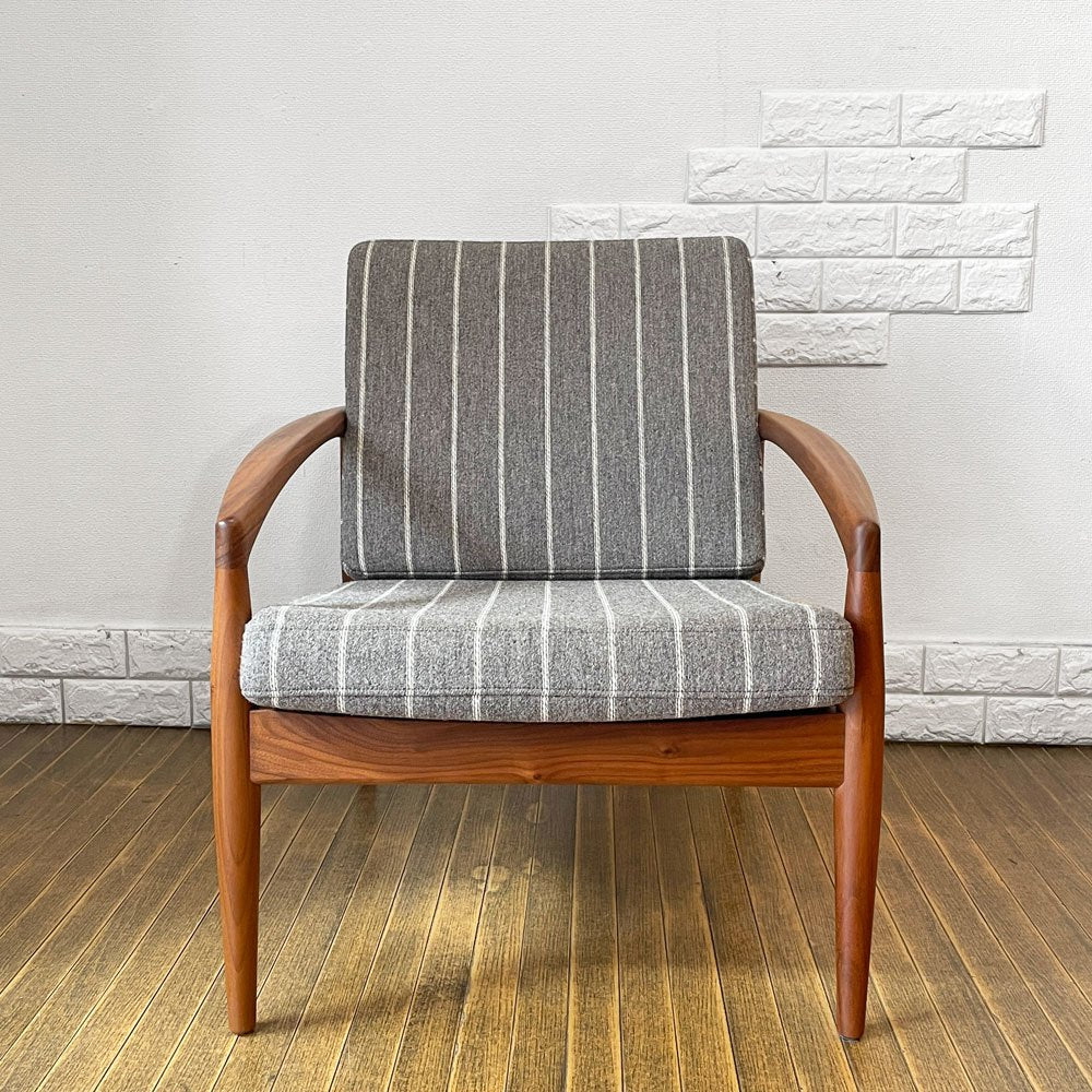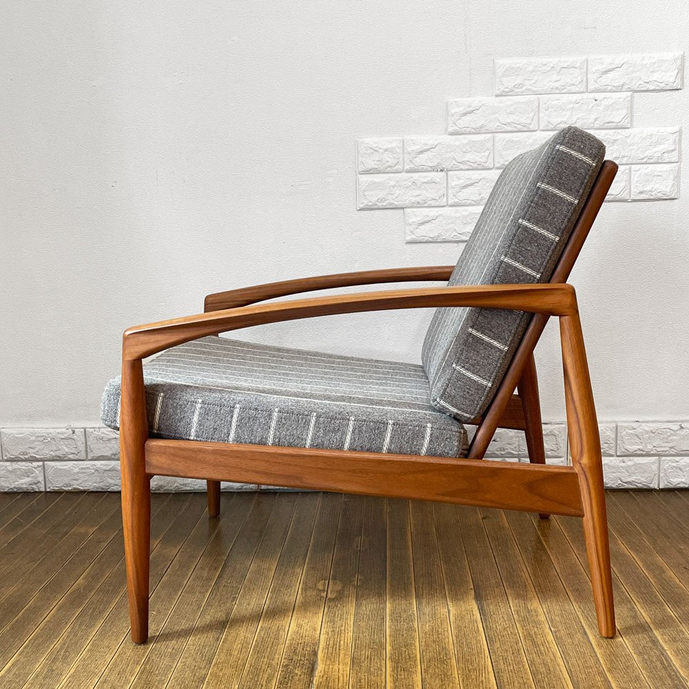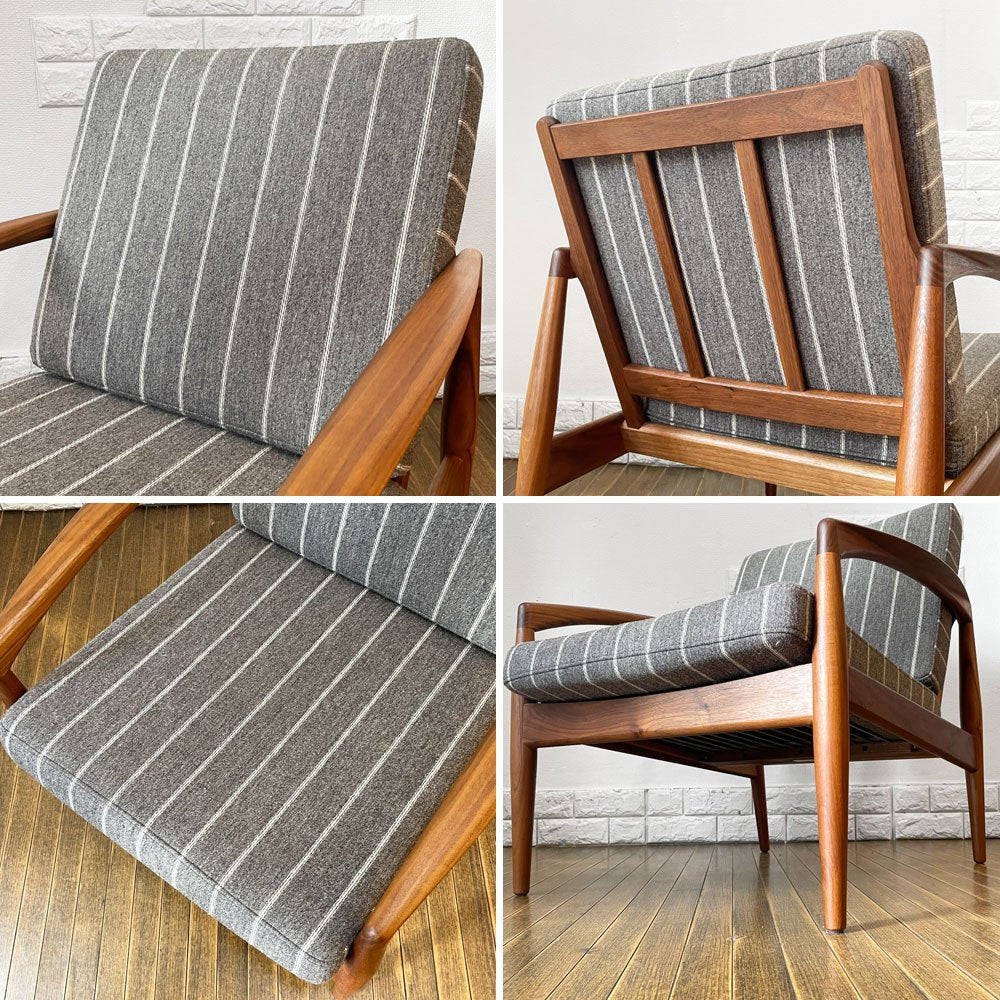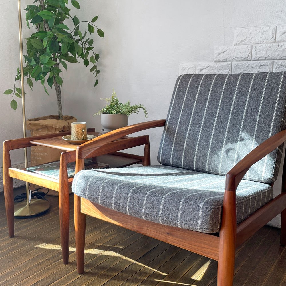 宮崎椅子製作所 ペーパーナイフソファ 1P 1人掛け ウォールナット材 ファブリック Kjellerup Vaeveri社 SAMSØ生地 カイ・クリスチャンセン ◎