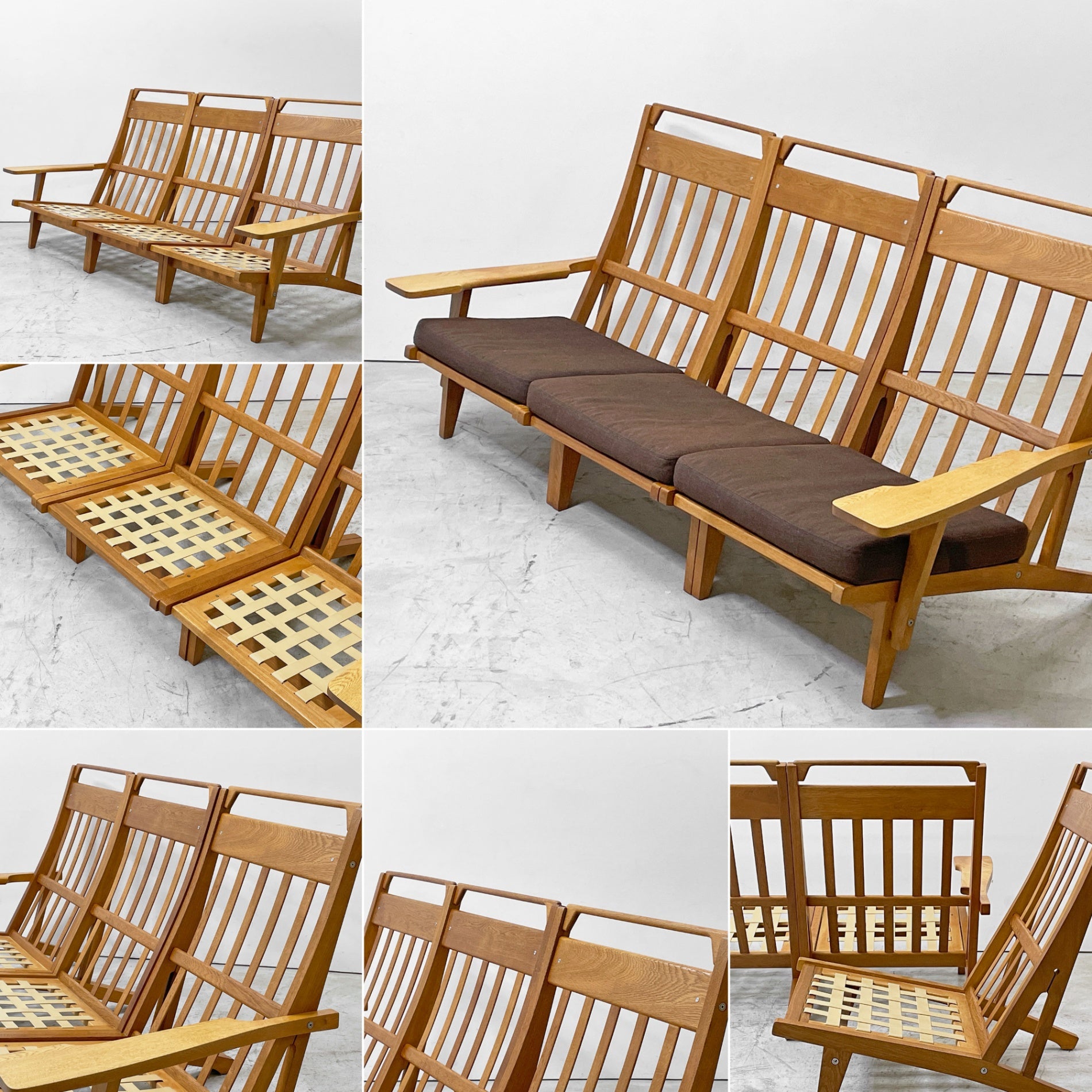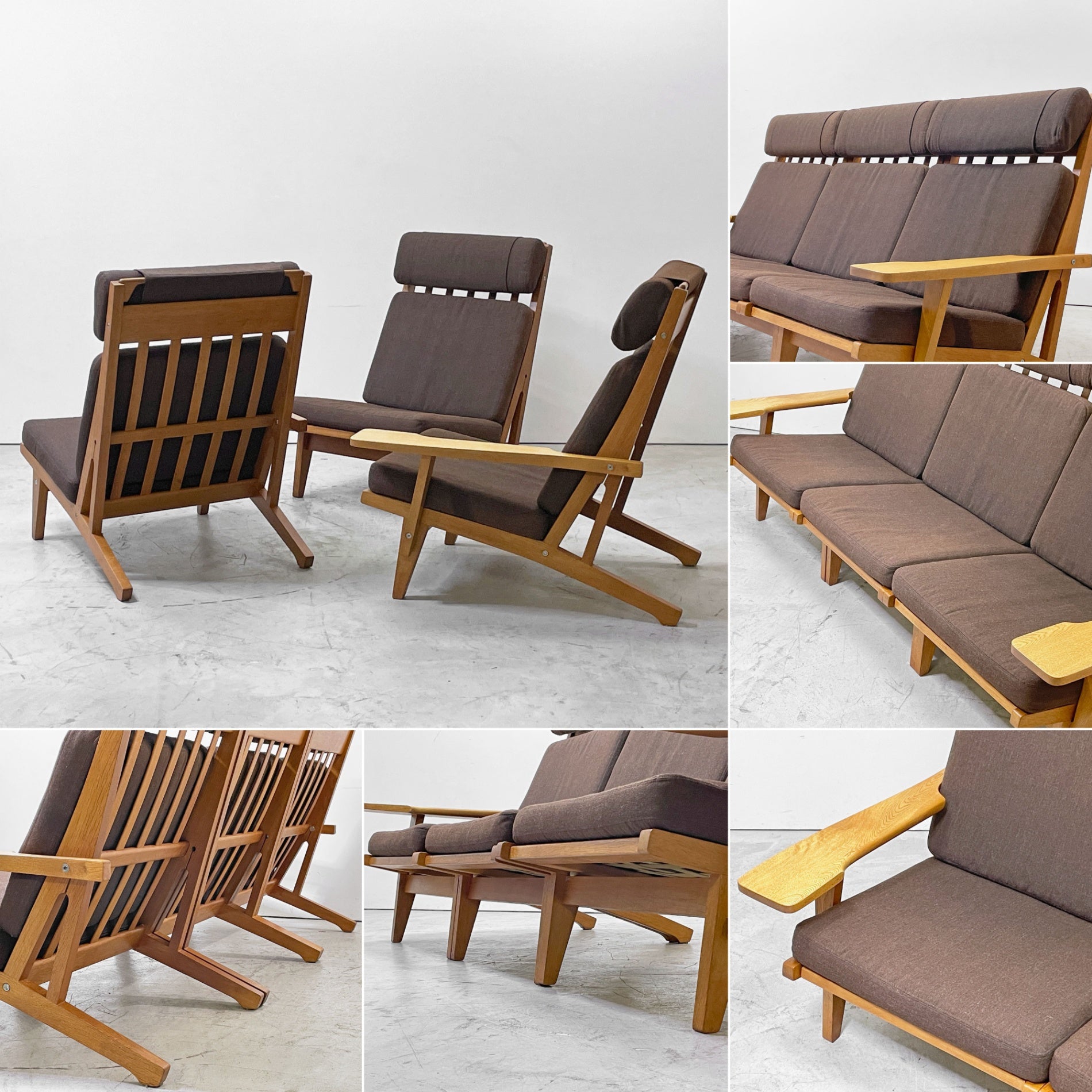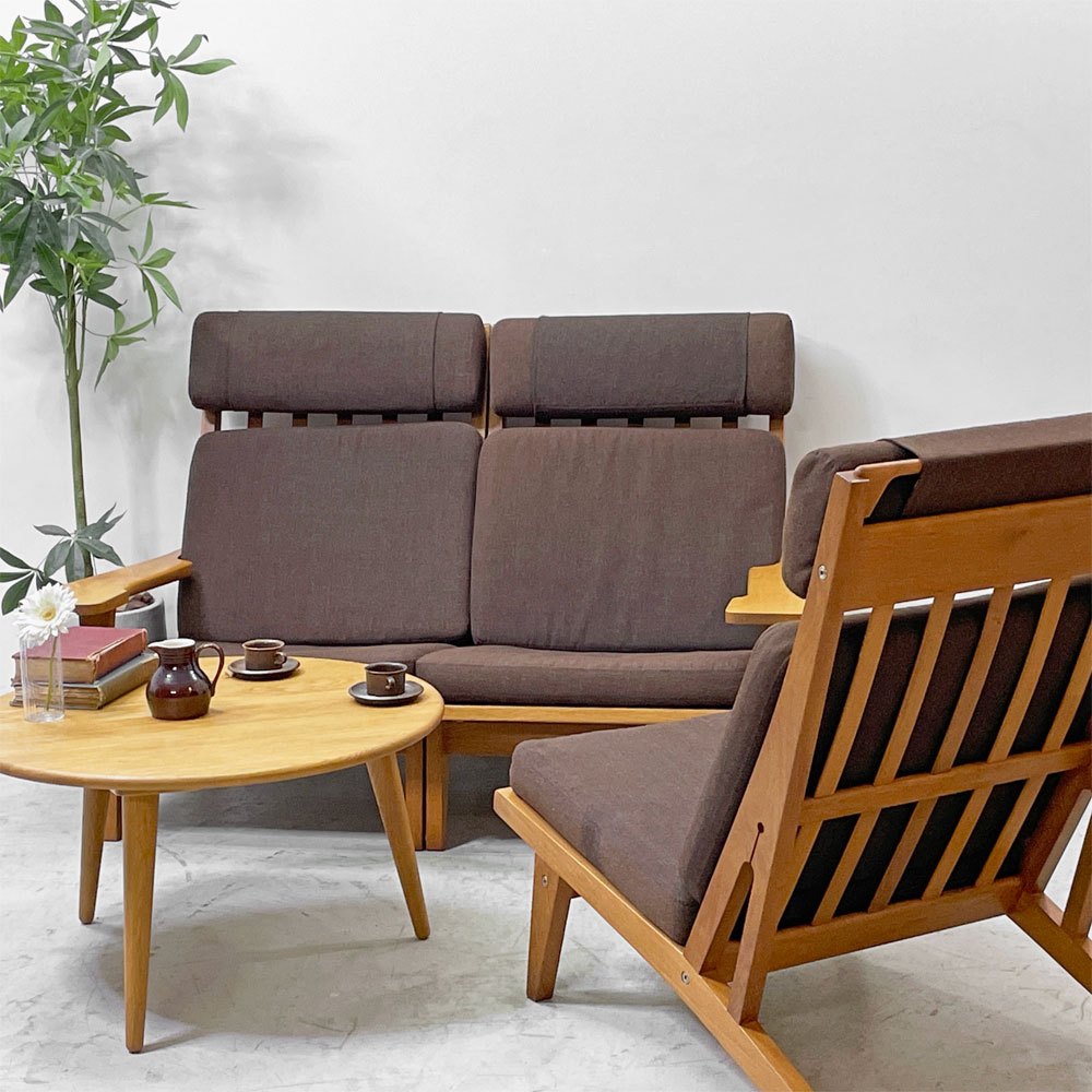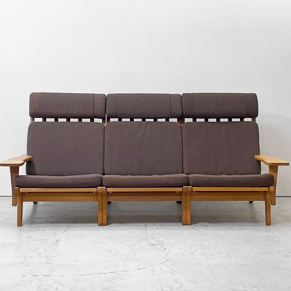 ゲタマ GETAMA GE375 3Pソファ ハイバックチェア オーク材 ブラウン系フ ァブリック ビンテージ ハンス・J・ウェグナー 北欧家具 ●