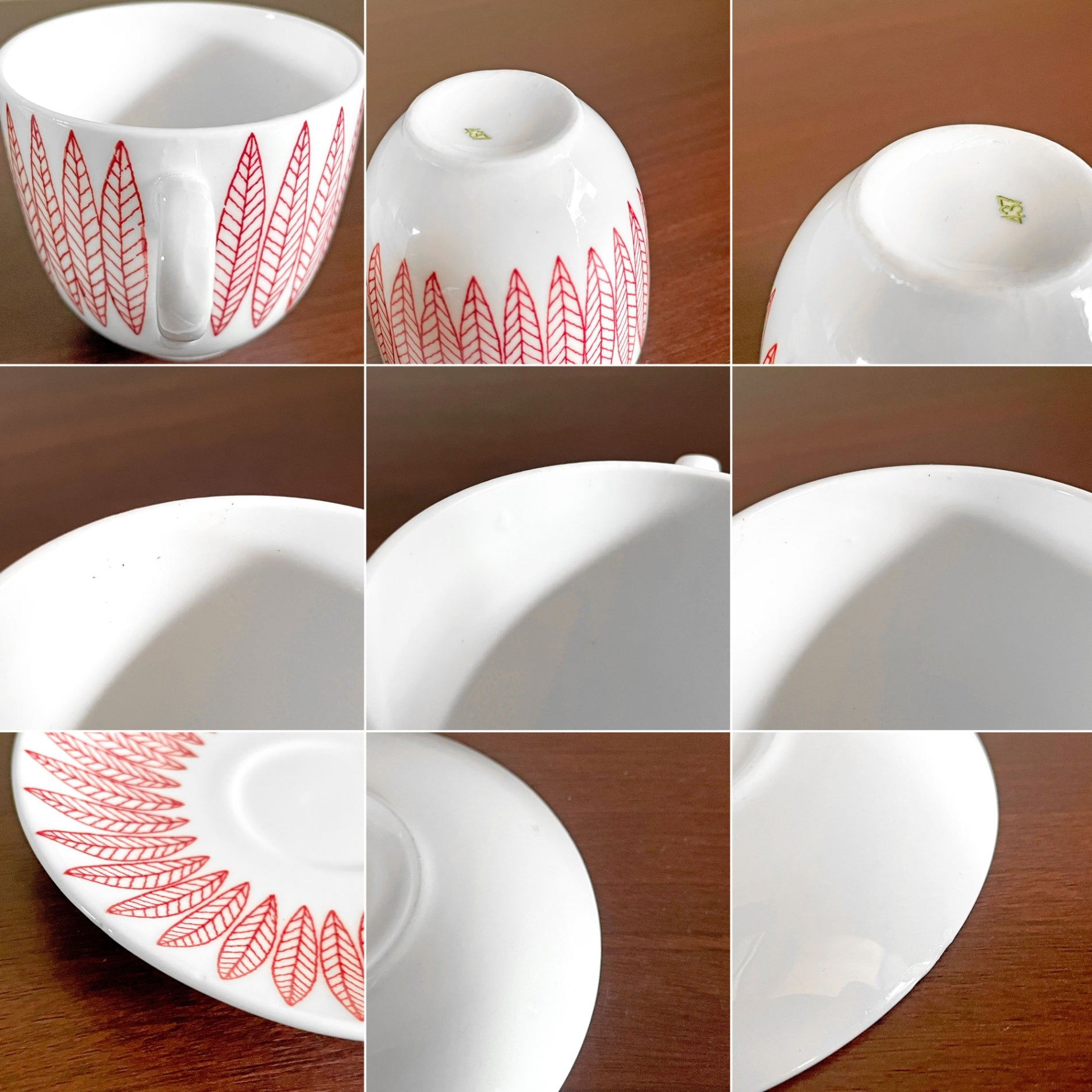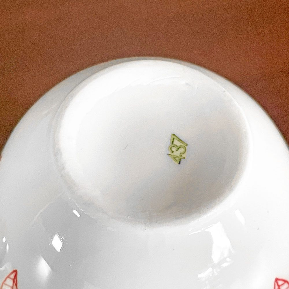 カップ表面に製造時からの僅かなプリントロス、ソーサー裏側に小さなペイントのとびがある箇所、縁や内部に極僅かなチップがございます。