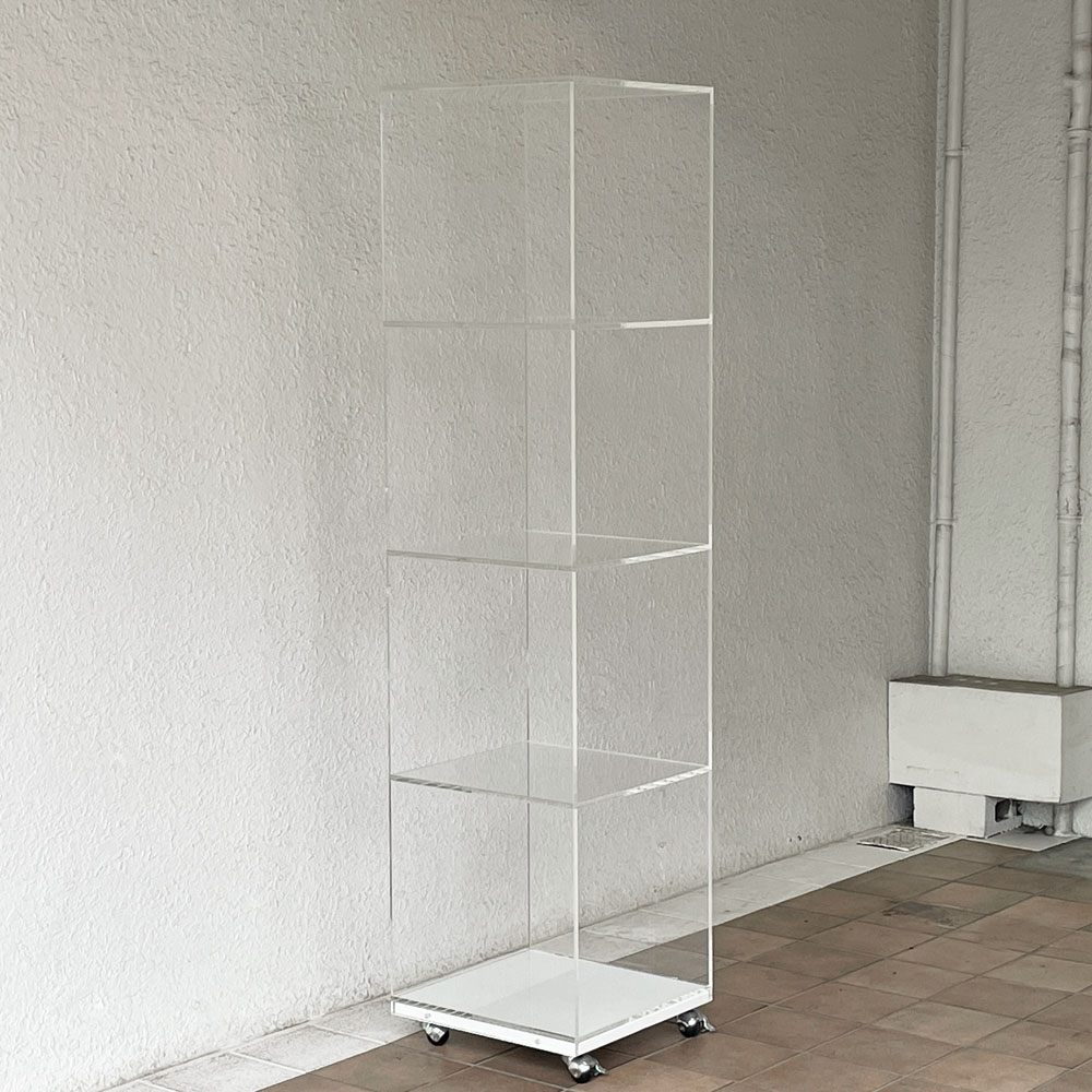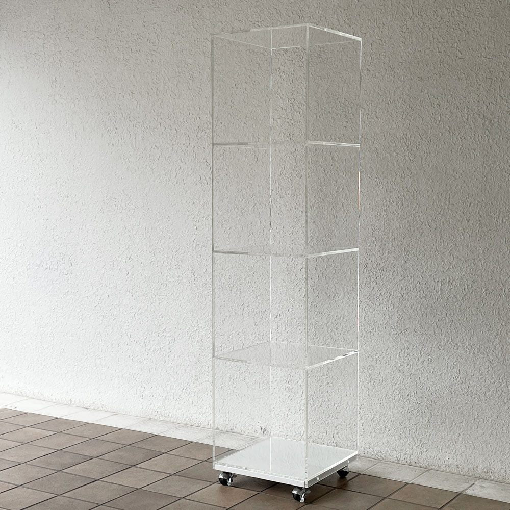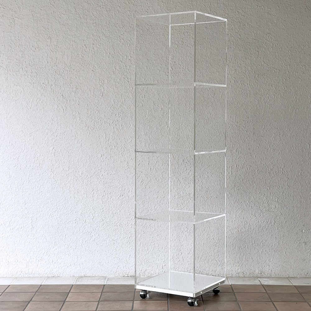 アクリル製 オープンシェルフ ディスプレイラック 4段 キャスター付き 台車