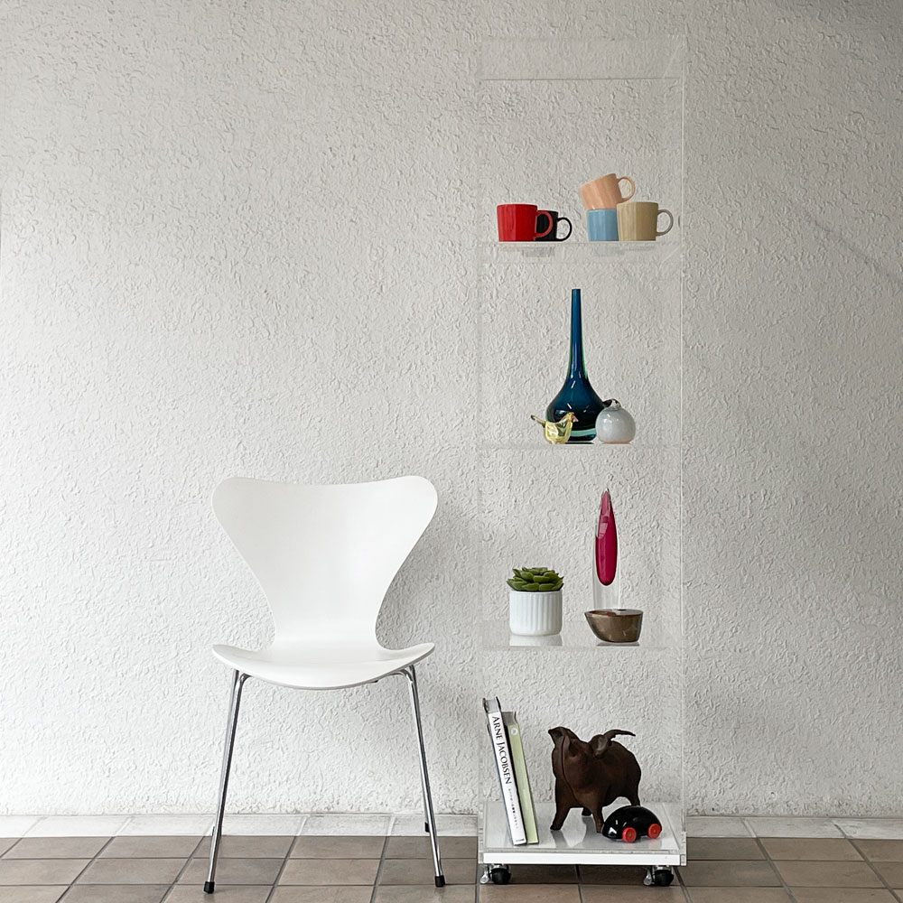 まるでそこに存在していないかのような見通しの良さは置く場所から生活感を減らし、ディスプレイするアイテムによりフォーカスした使い方を可能にしています。