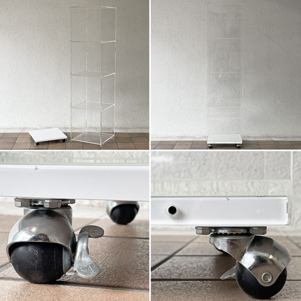 アクリル製 オープンシェルフ ディスプレイラック 4段 キャスター付き 台車 飾り棚 店舗什器 ◇