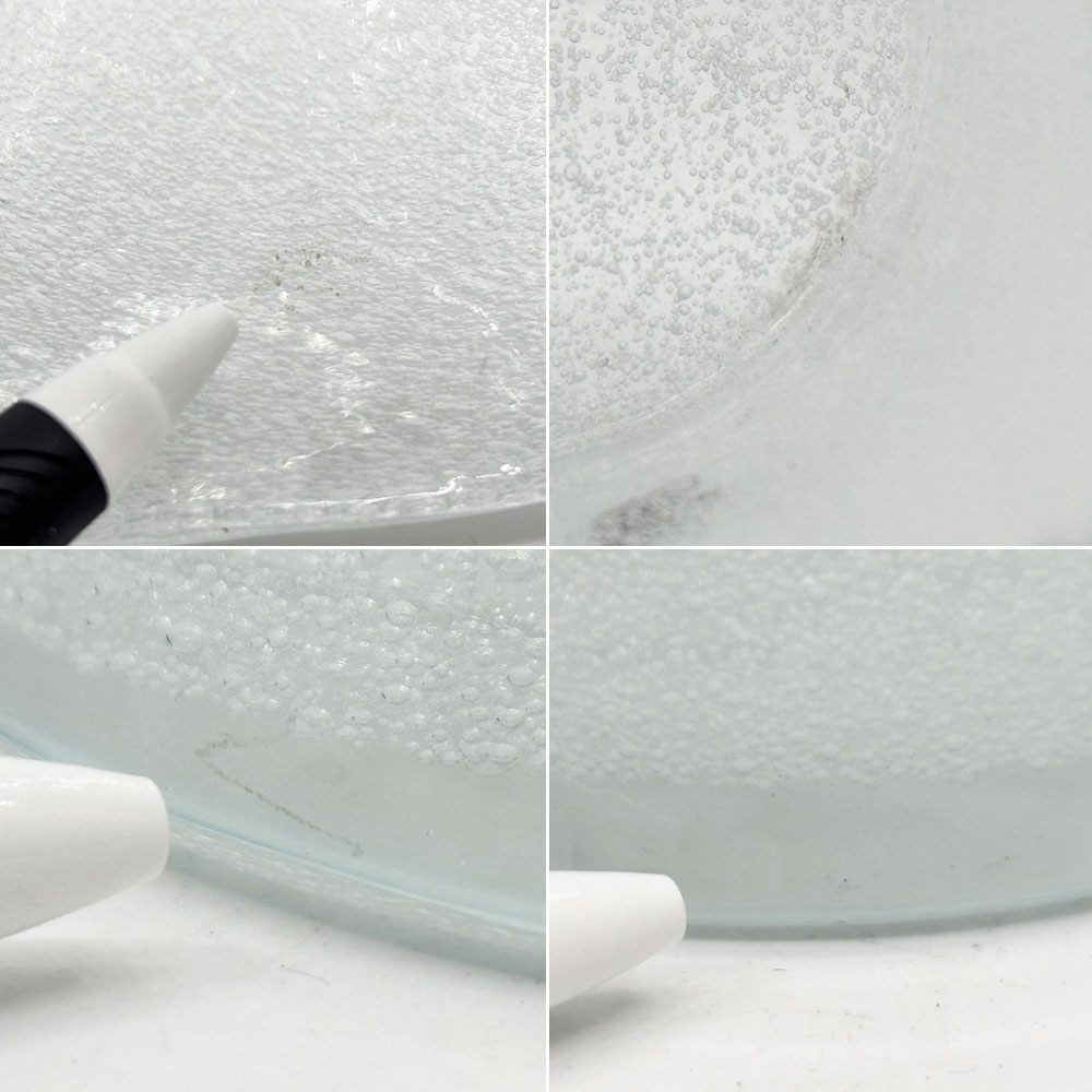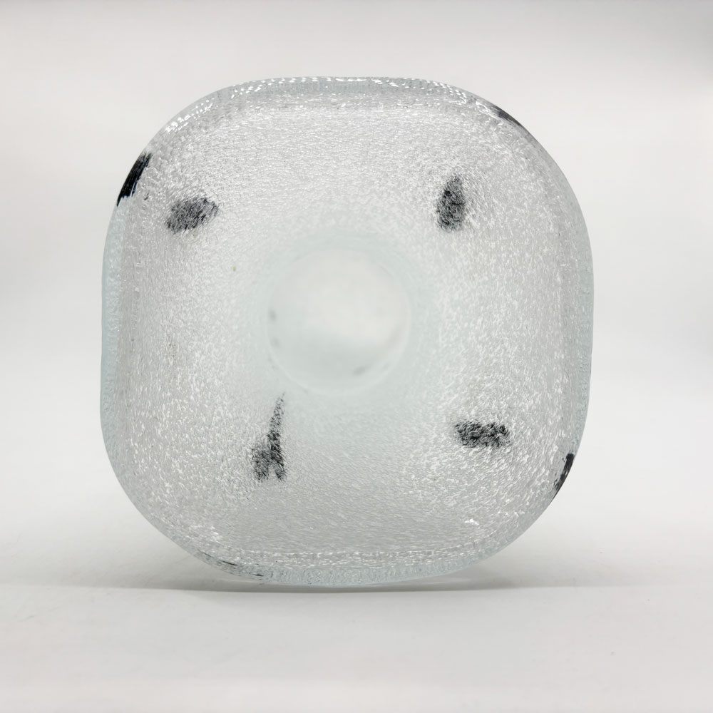 透明ガラスや切子ガラスが主流だった時代に、色彩豊かな作品を数多く生み出し、ガラス界に大きな衝撃を与える事となります。従来のガラス工場の量産品では、厳しい審査により気泡を含むものは廃棄される事が普通ですが、気泡を沢山入れるというガラス技法は、無機質な人工素材のイメージを覆す流動的な造形表現です。