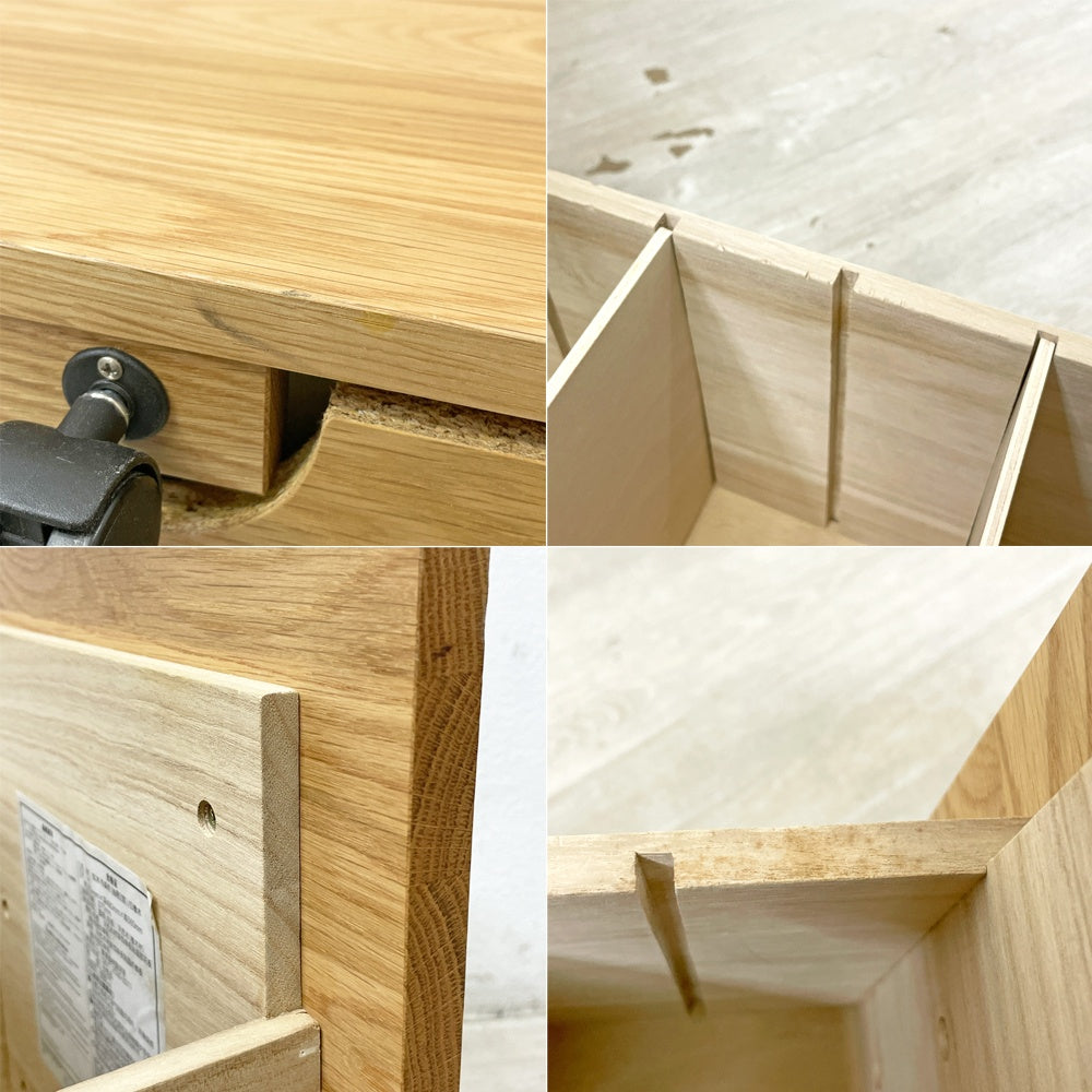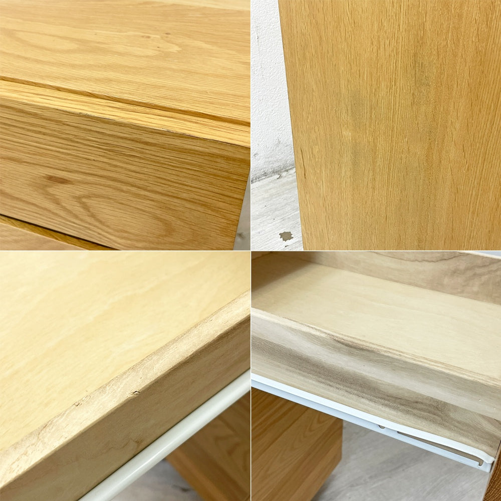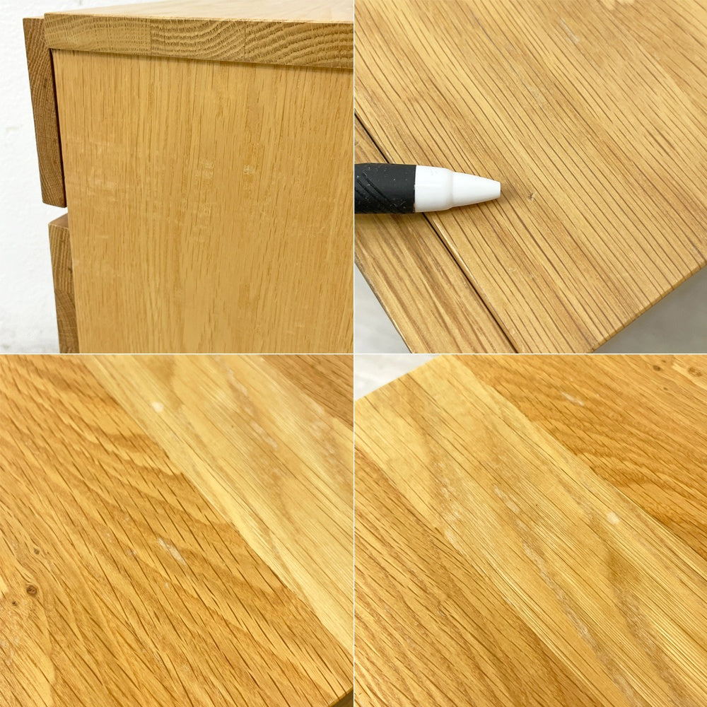 使用に伴い、傷や擦れ、打痕やペイントロス、抽斗内の染み汚れなどがございますが、いずれも大きく目立つようなダメージではございません。その他、ご使用に問題となるようなダメージなども無く、これからも安心してご使用頂けるコンディションを保っております。