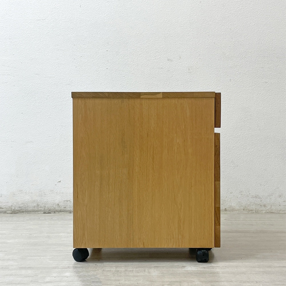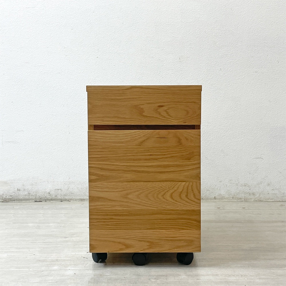 無印良品 MUJI デスクワゴン デスクキャビネット 袖机 オーク材 キャスター付 抽斗2杯 ナチュラル ●