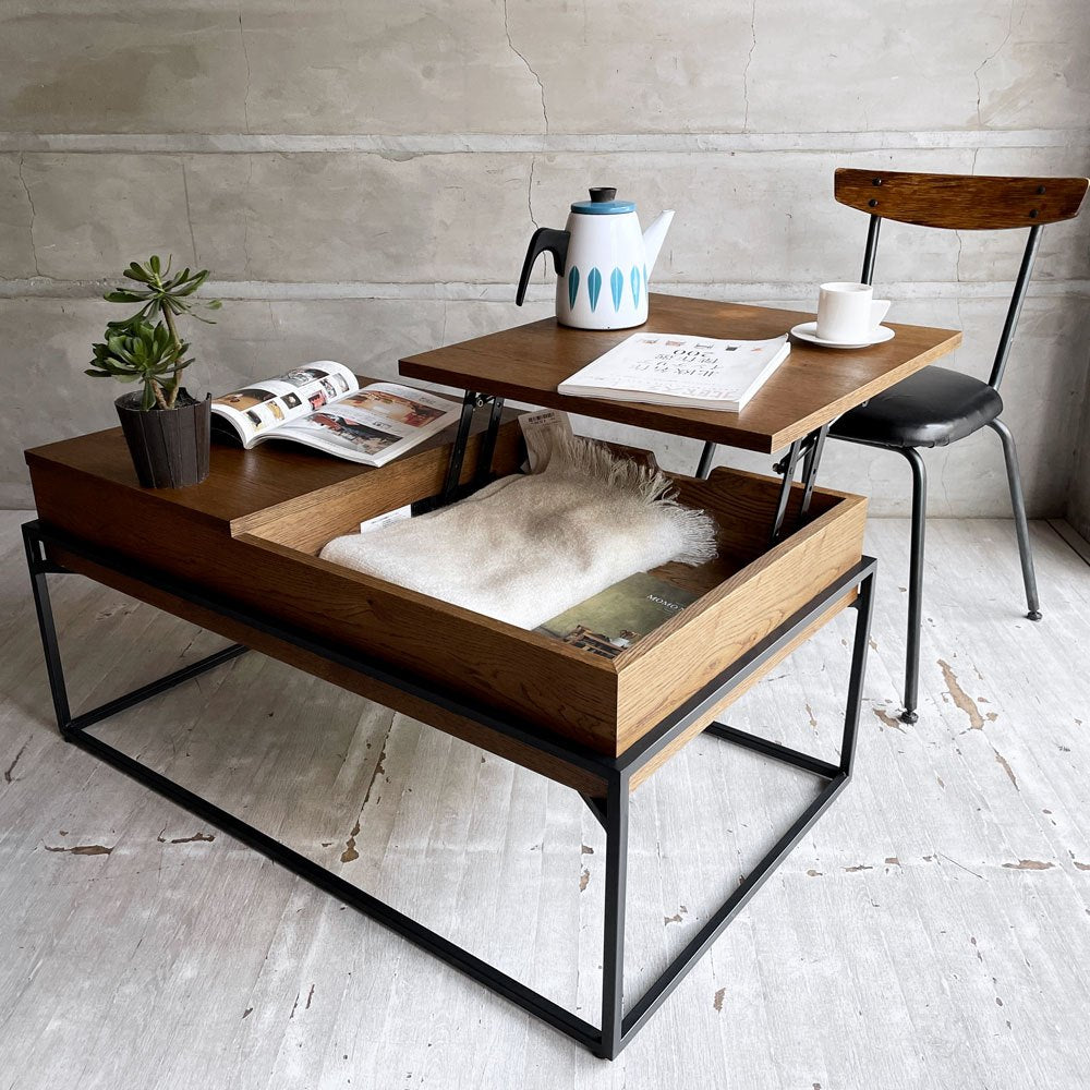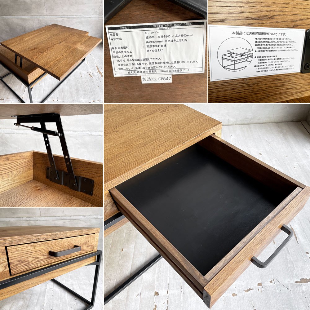 クラッシュゲート CRASH GATE イージーライフ Easy Life ロージー ROSY コーヒーテーブル ローテーブル リフトアップテーブル オーク材 スチール脚 定価¥71,500- ♪