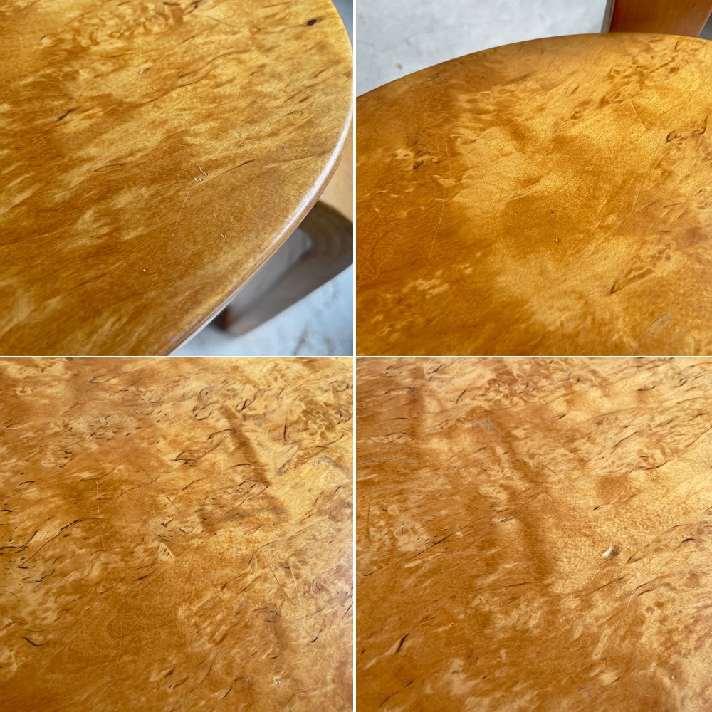 チェア69は通常、均質なバーチ材を用いた量産モデルですが、こちらは極めて稀なカーリーバーチ材を使用。