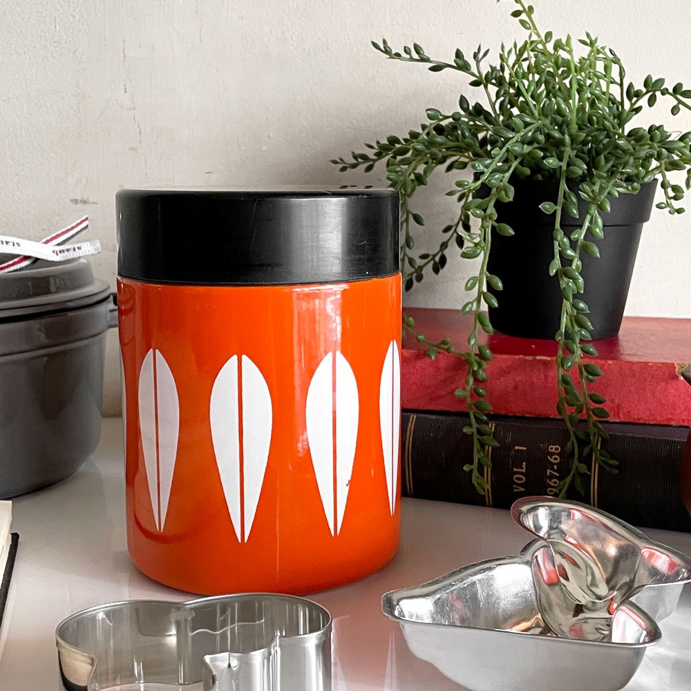 キャサリンホルム Cathrineholm ロータス Lotus キャニスター 缶 オレンジ 蓋付き アルミ製 北欧 ビンテージ ~懐かしさと素材がもつ魅力の北欧ビンテージ雑貨~