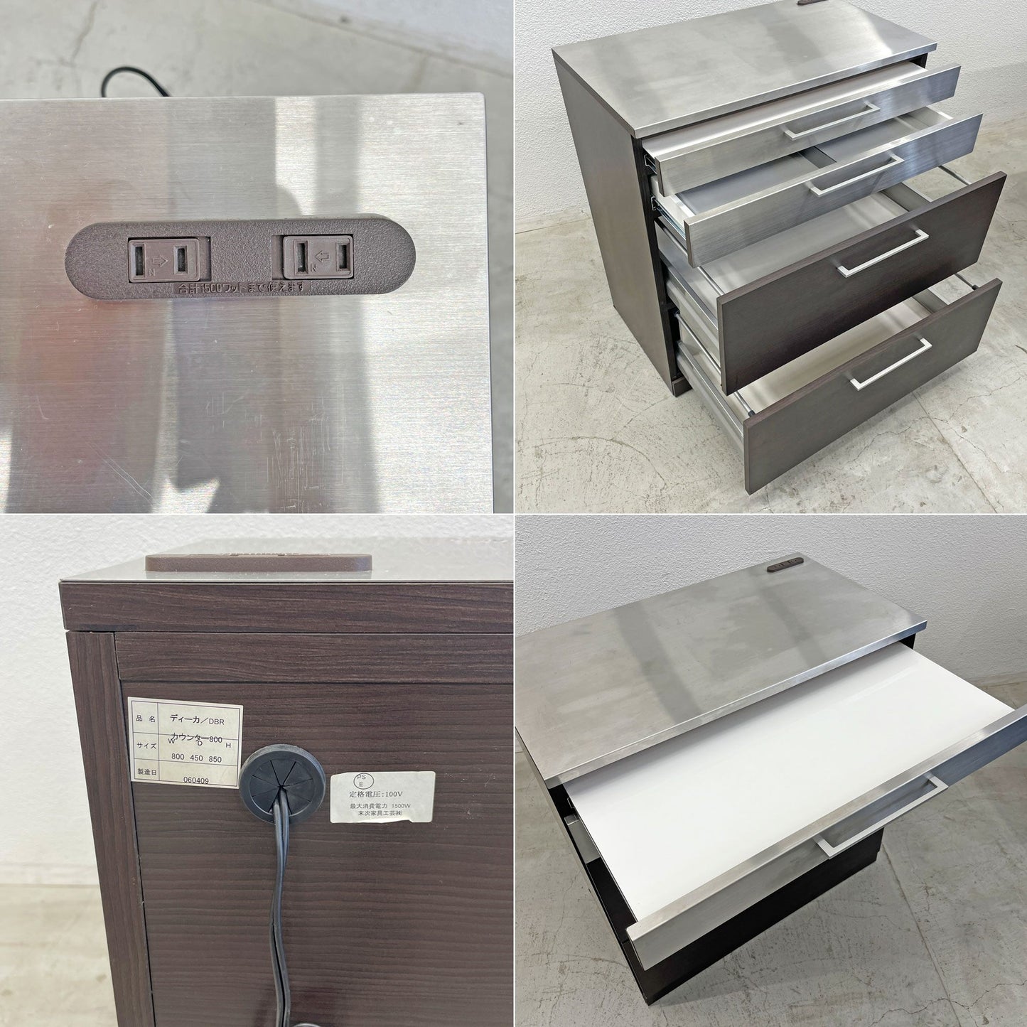 ディーカ DICA カウンター800 レンジ台 キッチンカウンター ボード キャビネット ステンレストップ 食器棚 4段収納棚