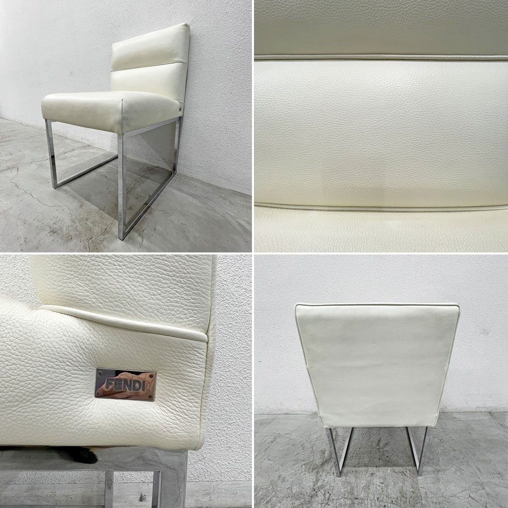 フェンディ・カーサ FENDI CASA エー・ビー・デュアメル AB Duhamel ダイニングチェア 本牛革 オフホワイト 参考価格 約45万~65万の品 D 〓