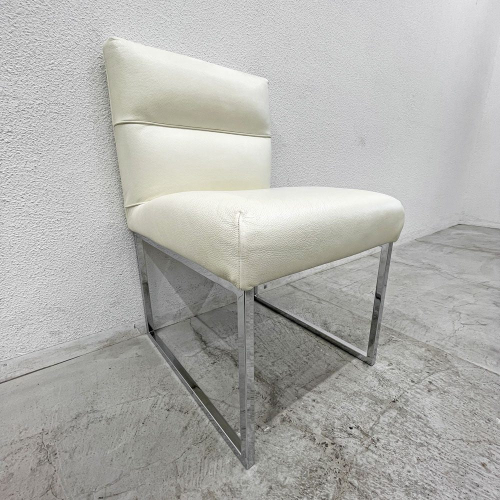 こちらはクッション性のある柔軟なシートを備えたオフホワイトの鞣革張りのダイニングチェア。