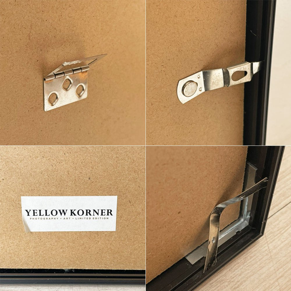 壁に立てかけて飾ることは勿論、額装裏に付属している蝶番を利用し、壁に掛けてもお楽しみいただけます。