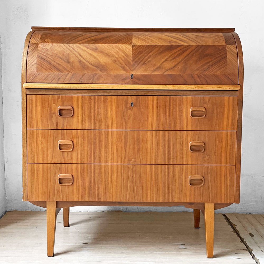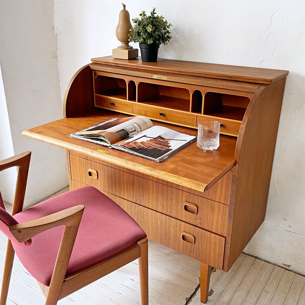 Markaryds Mobelindustri社 ロールトップ ライティングビューロー チーク材 × ビーチ材 Egon Ostergaard 鍵付き スウェーデンビンテージ~すべてが詰まっている~