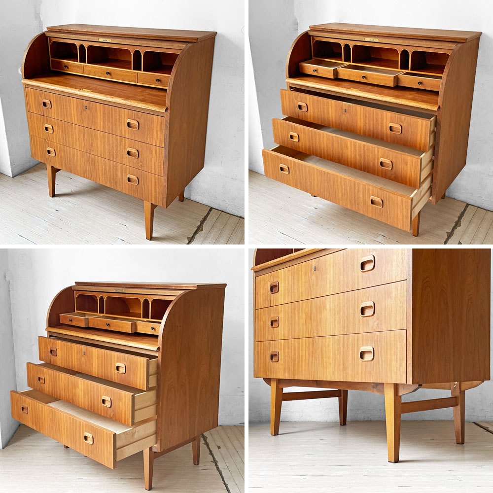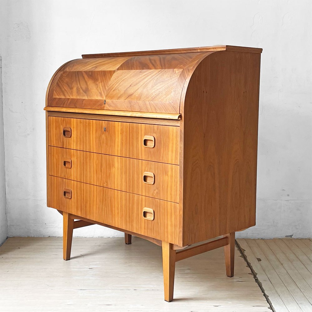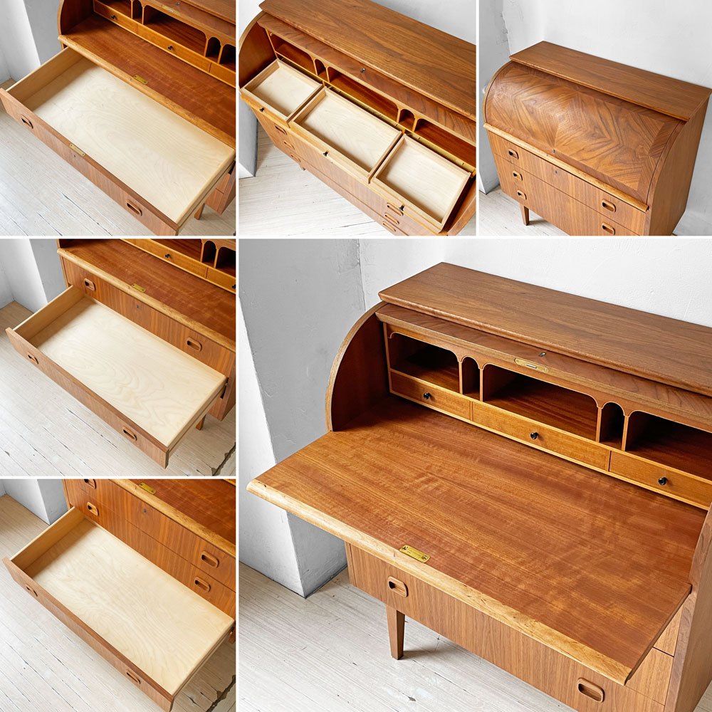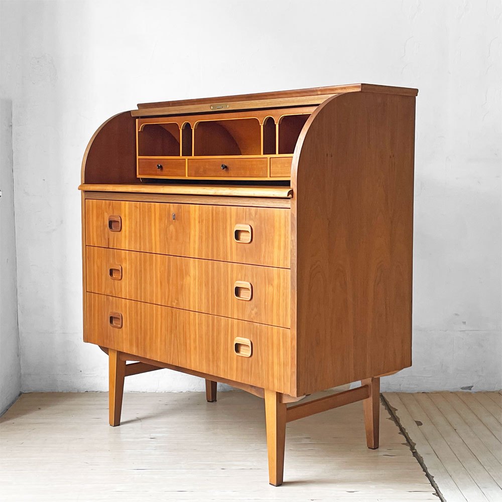 Markaryds Mobelindustri社 ロールトップ ライティングビューロー チーク材 × ビーチ材 Egon Ostergaard 鍵付き スウェーデンビンテージ ★