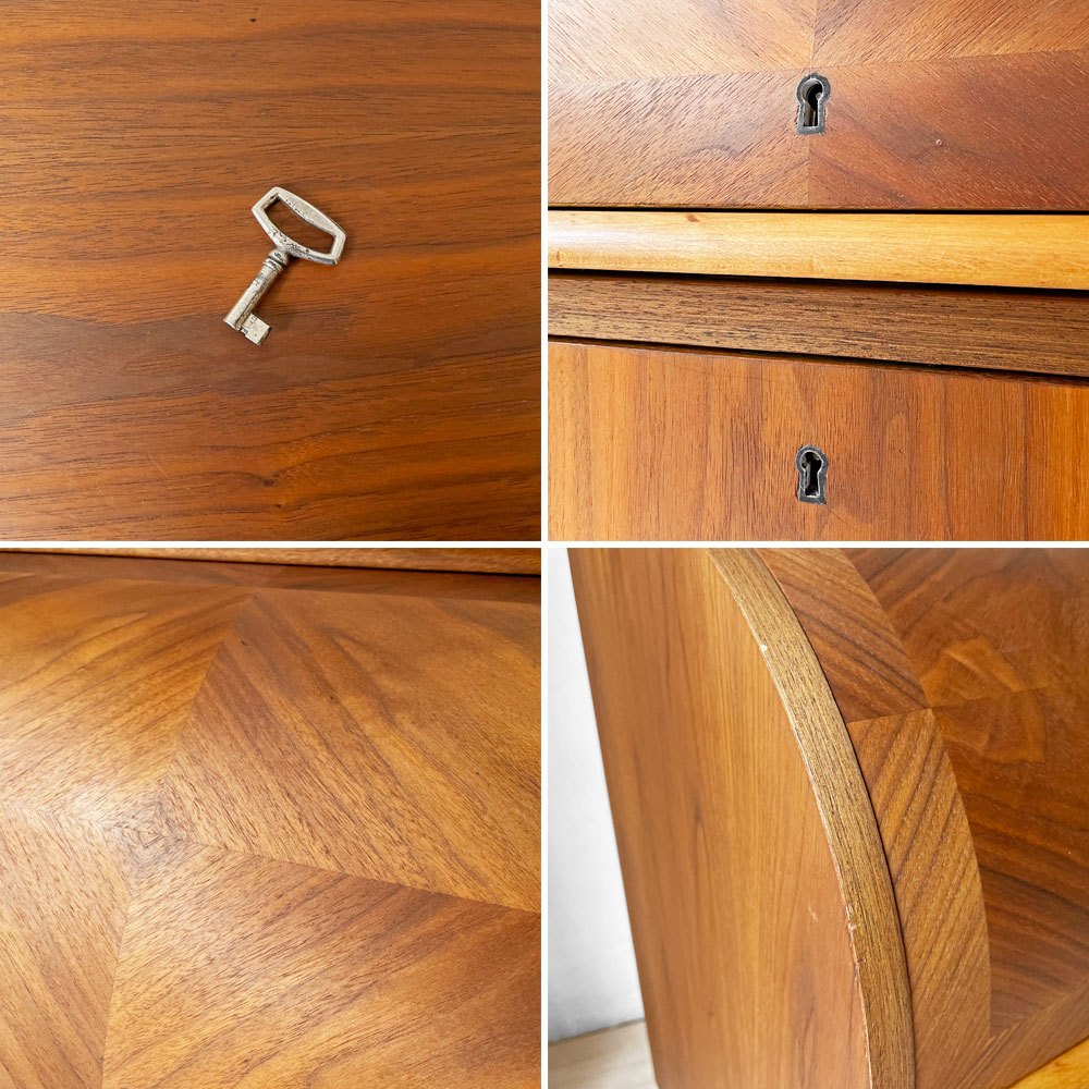 上部は美しい曲線を描く鍵付きのロールトップ仕様となり、トップをくるりと開くことでライティングビューローとしてお使いいただける優れたアイテム。