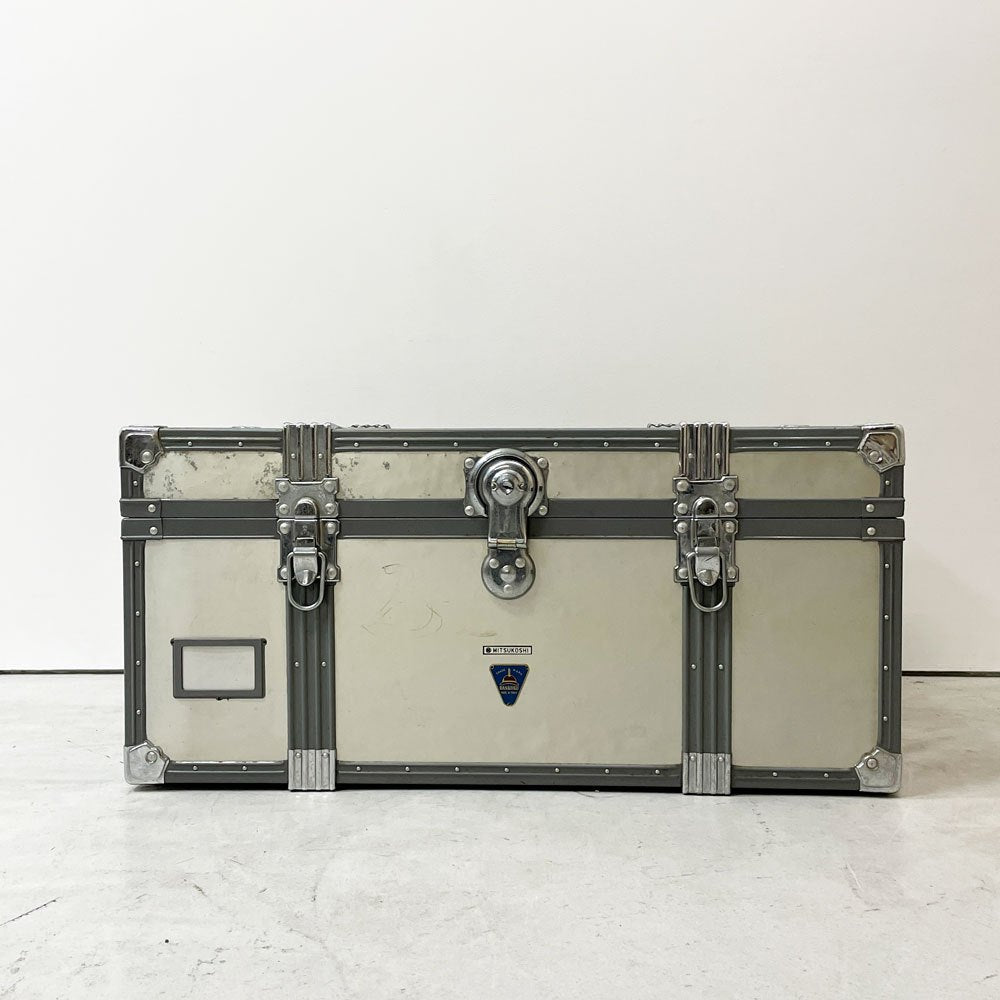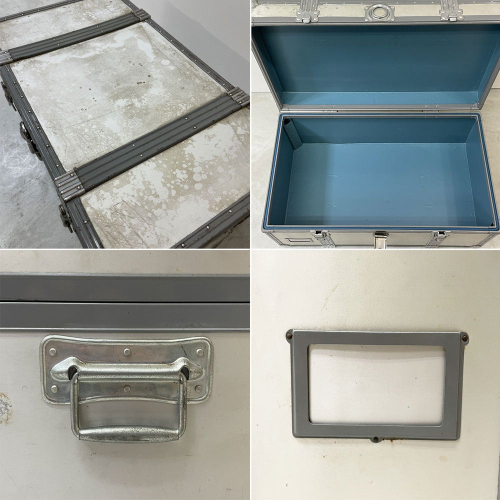 ビンテージ ジュラルミンケース アルミ製 トランク ローテーブル インダストリアルデザイン 工業系 店舗什器 A ●