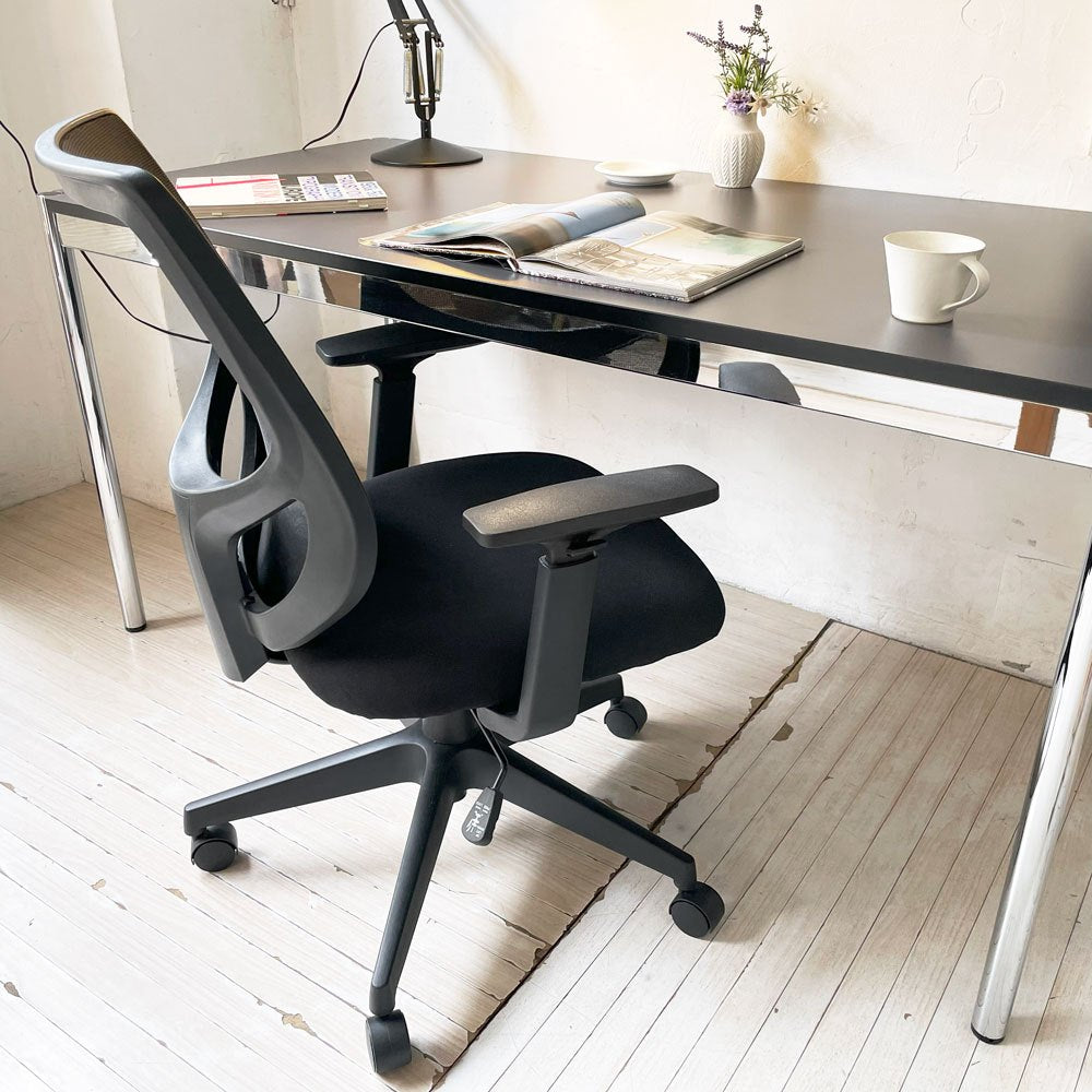 黒で統一されたボディは、様々なデスクシーンに馴染む一脚。
