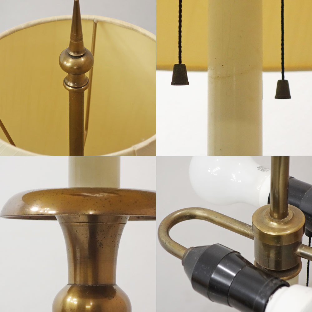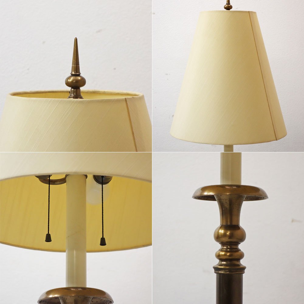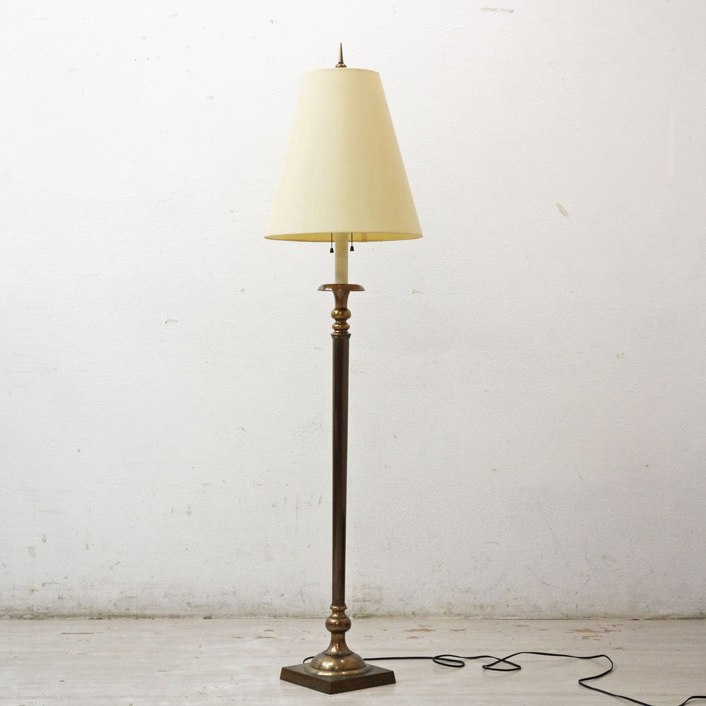 山菊工芸 フロアランプ フロアスタンド 真鍮ポール × ファブリックシェード 2灯 ビンテージスタイル ●
