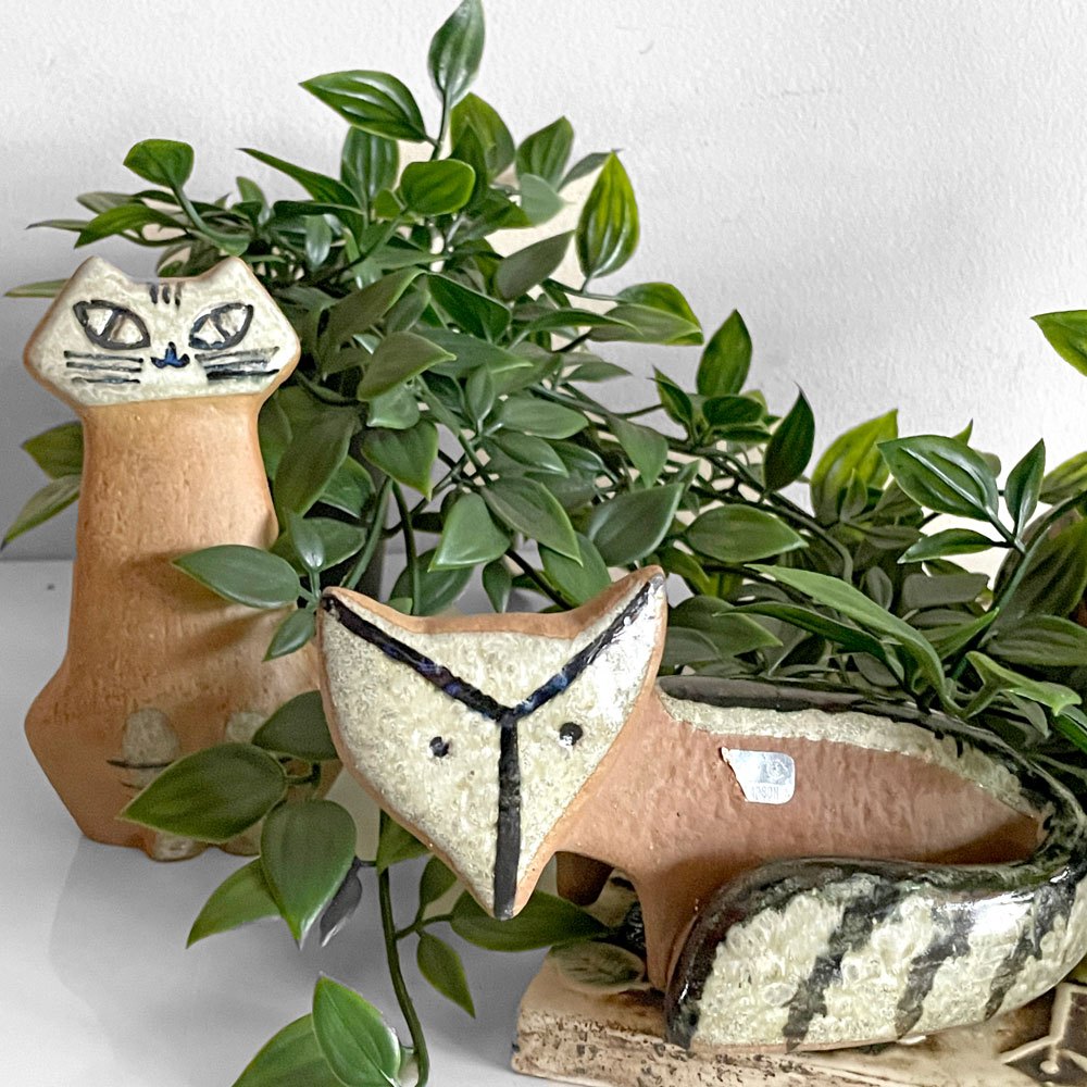 こちらは1955年に製作されたビンテージのお座りする猫。姿勢の異なる3体の猫はすべて揃えたくなるほどにどれも愛嬌たっぷりです。