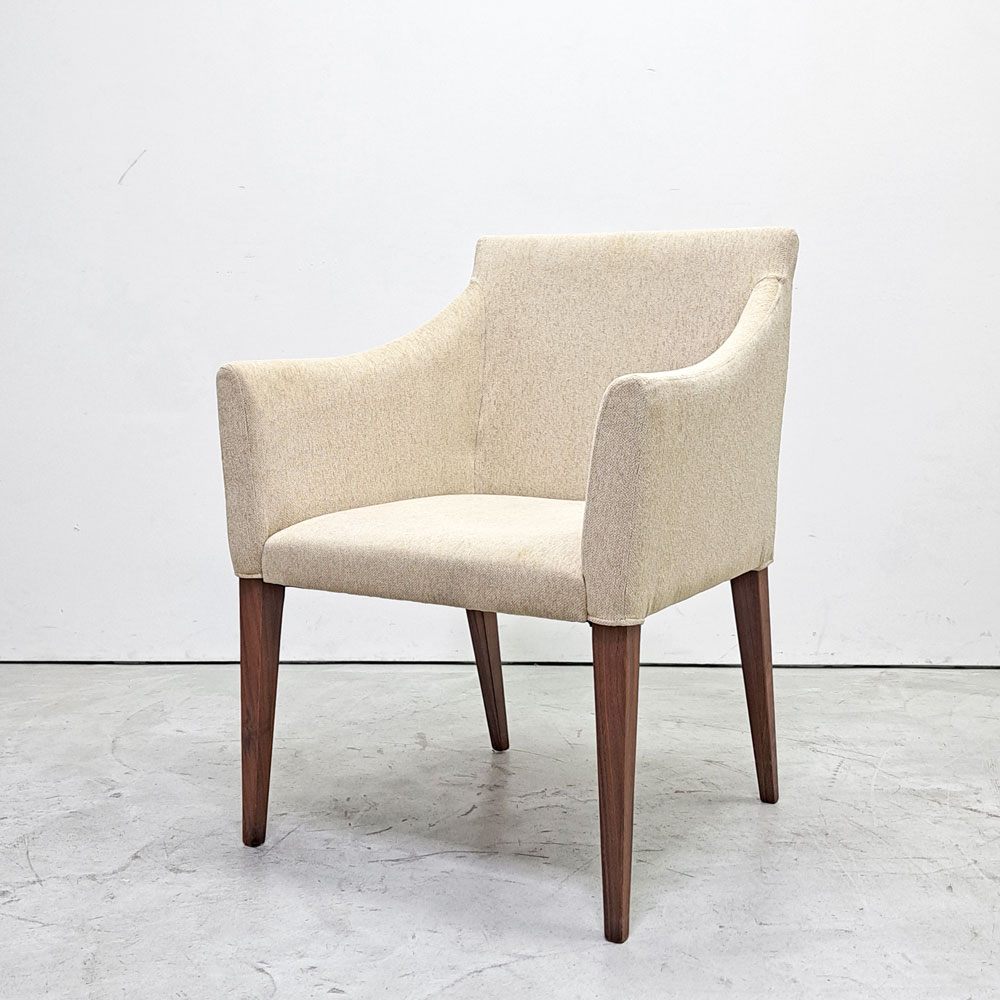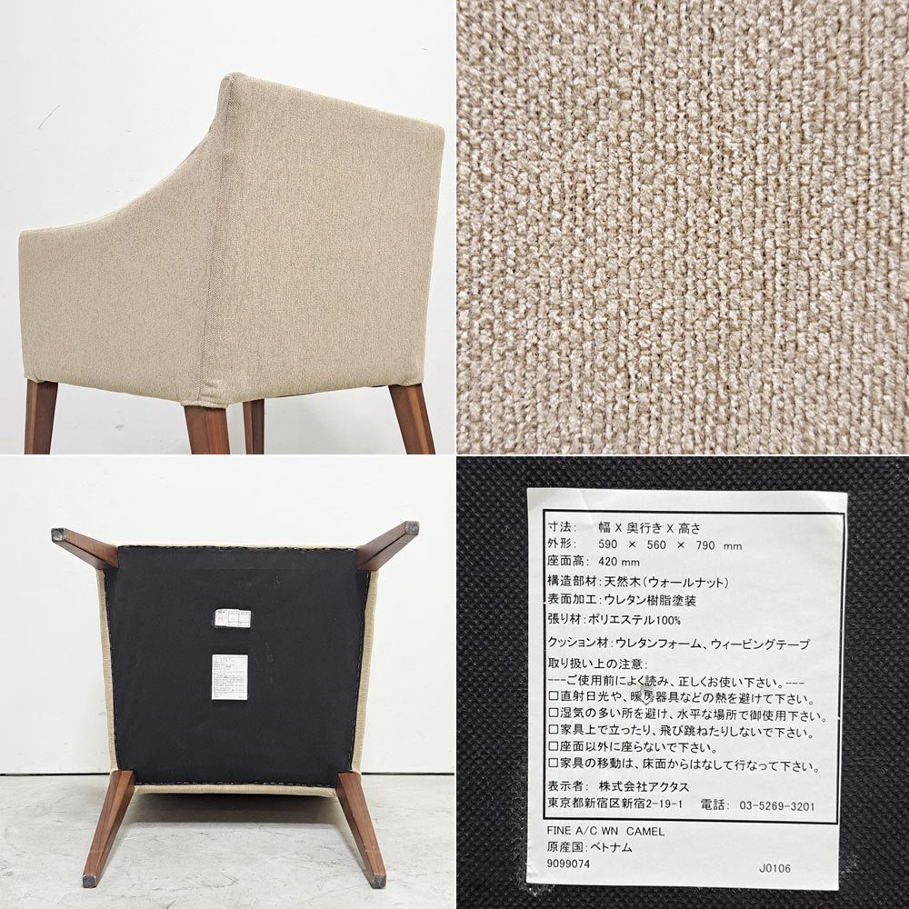 アクタス ACTUS ファイン2 FINE2 ダイニングチェア アームチェア ウォールナット材 ファブリックシート ホワイトベージュ系 張り座 ナチュラルモダン 廃番 A ●
