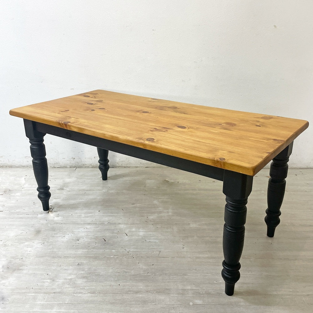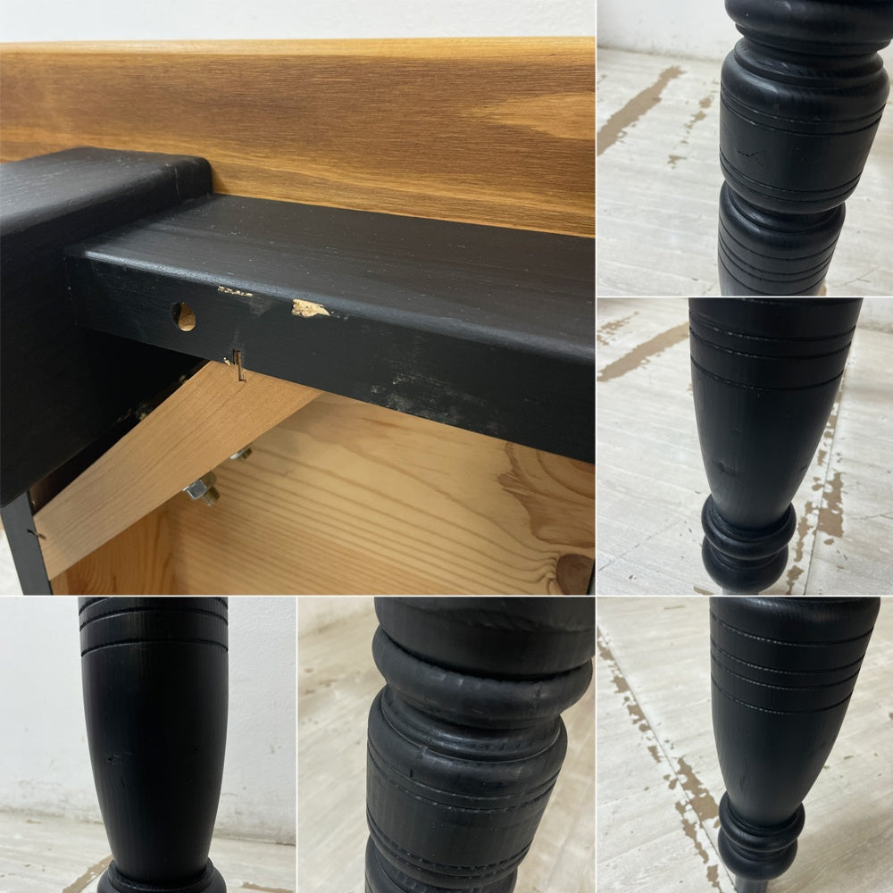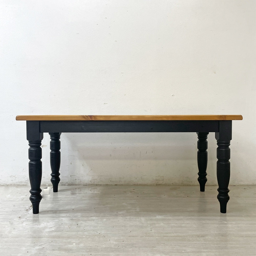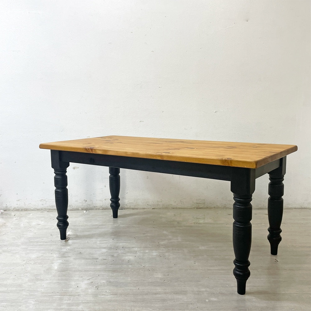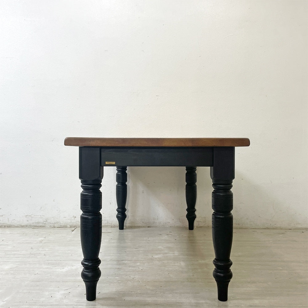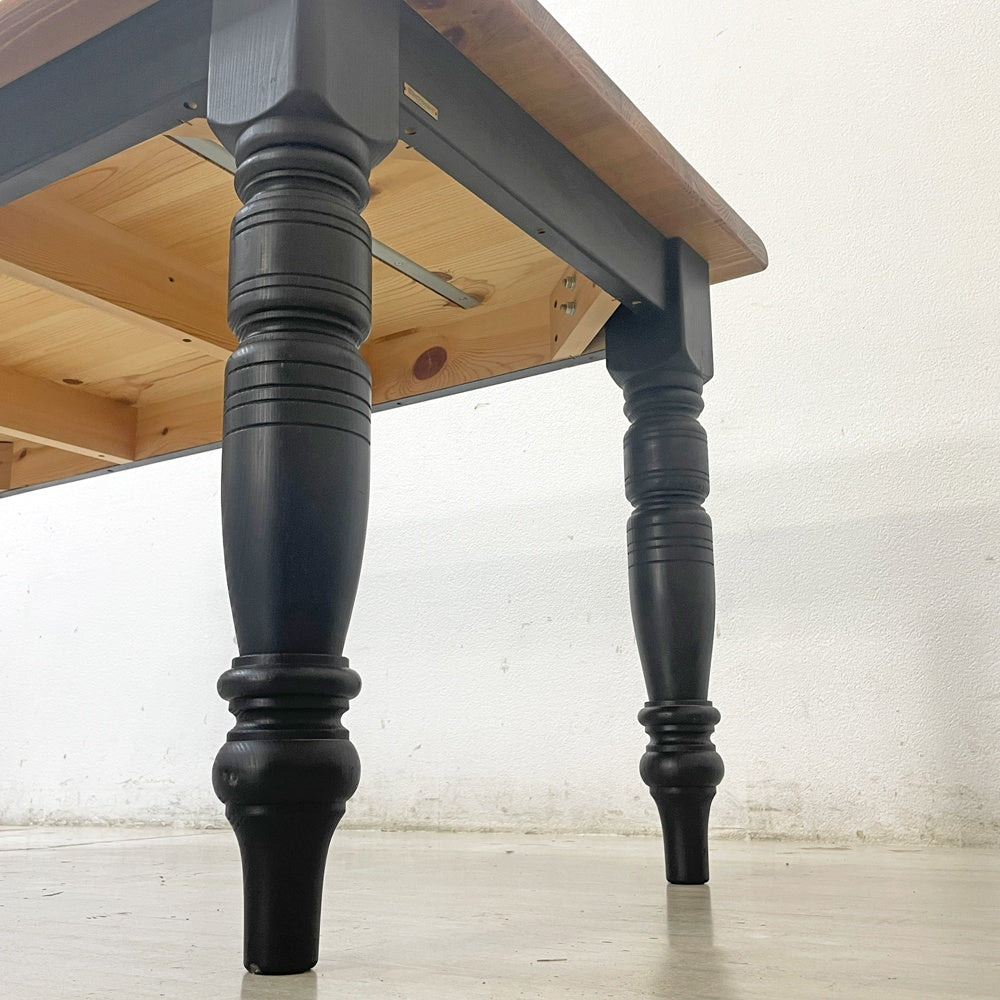 ブラックカラーのろくろ脚とパイン無垢材を組み合わせたクラシカルなデザイン。