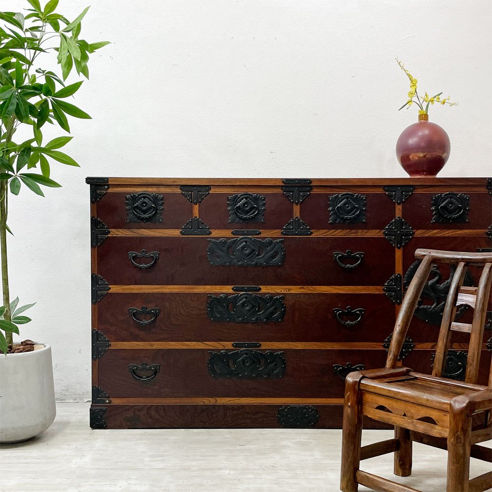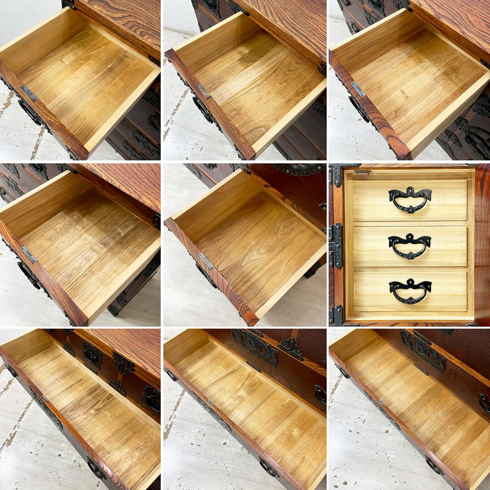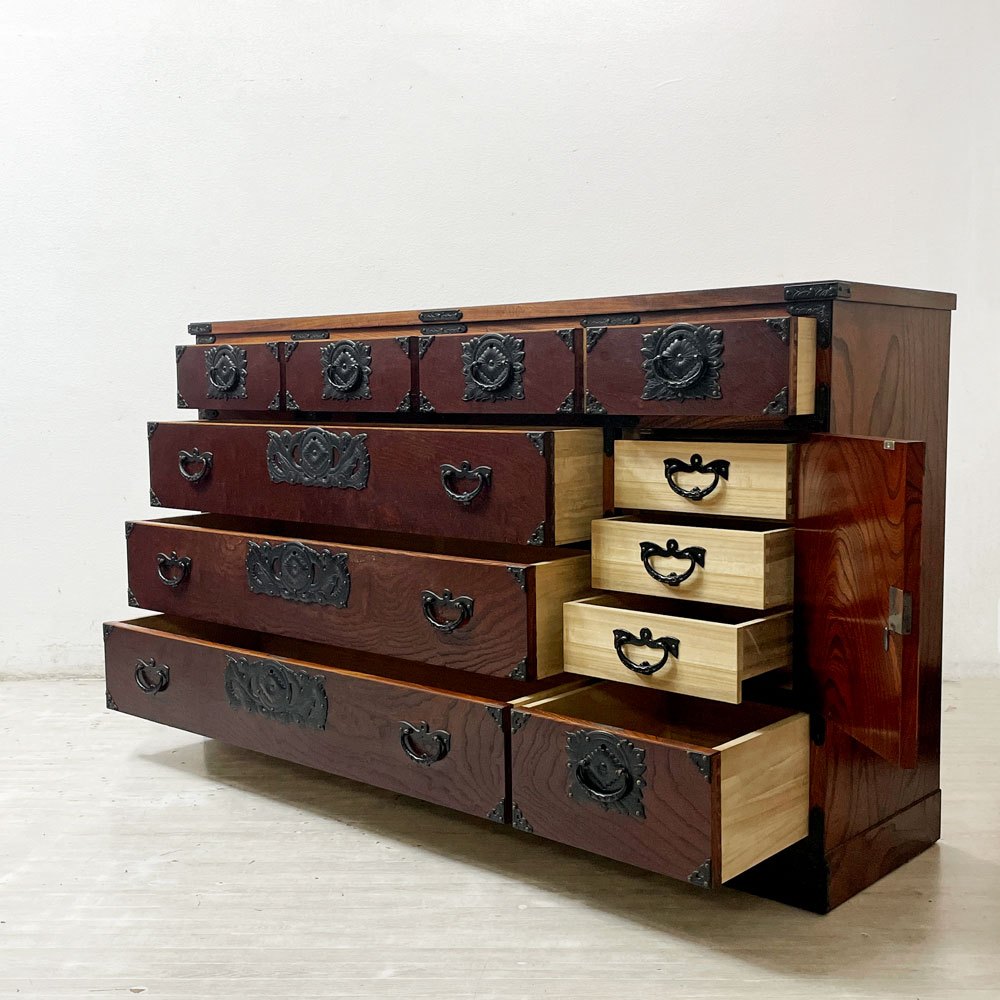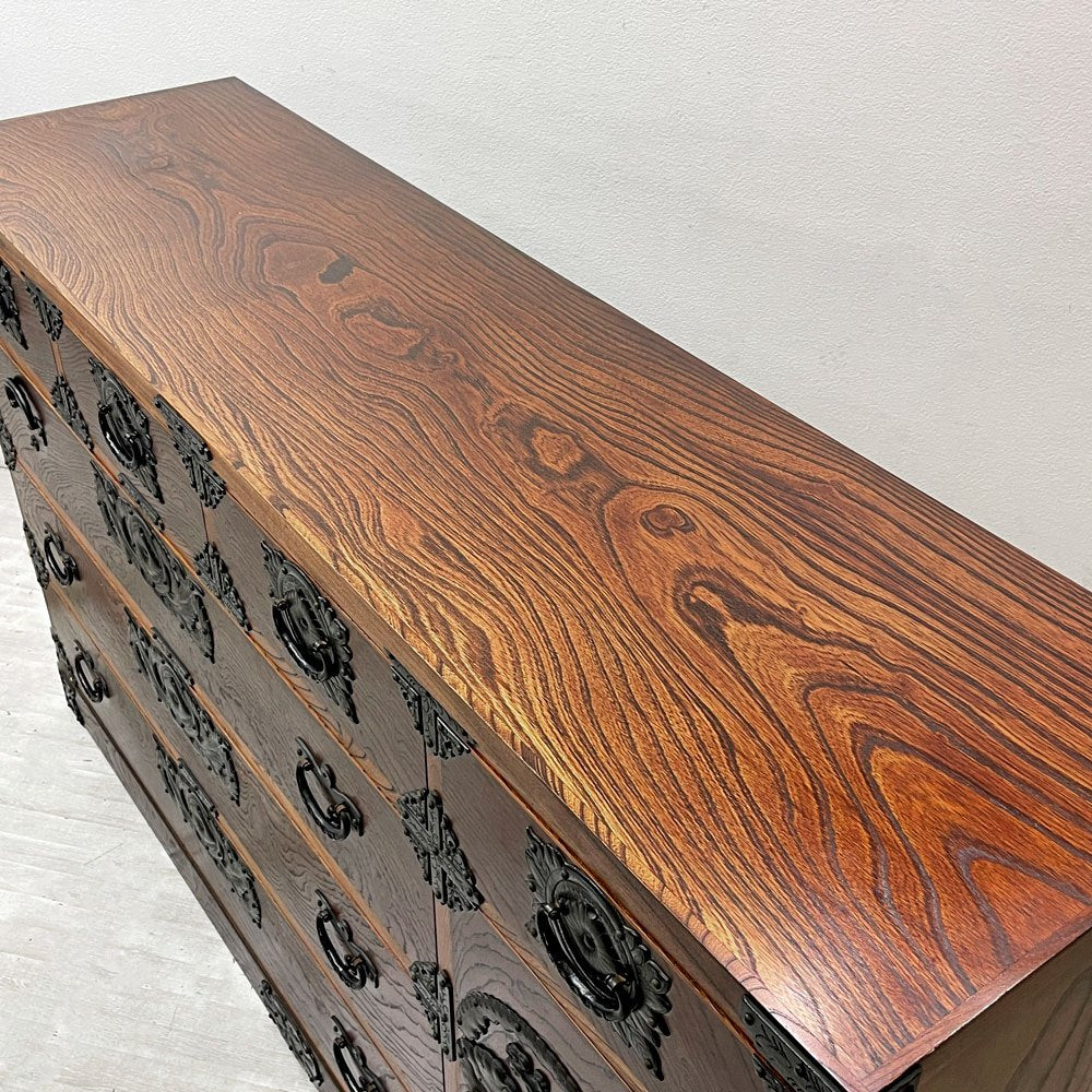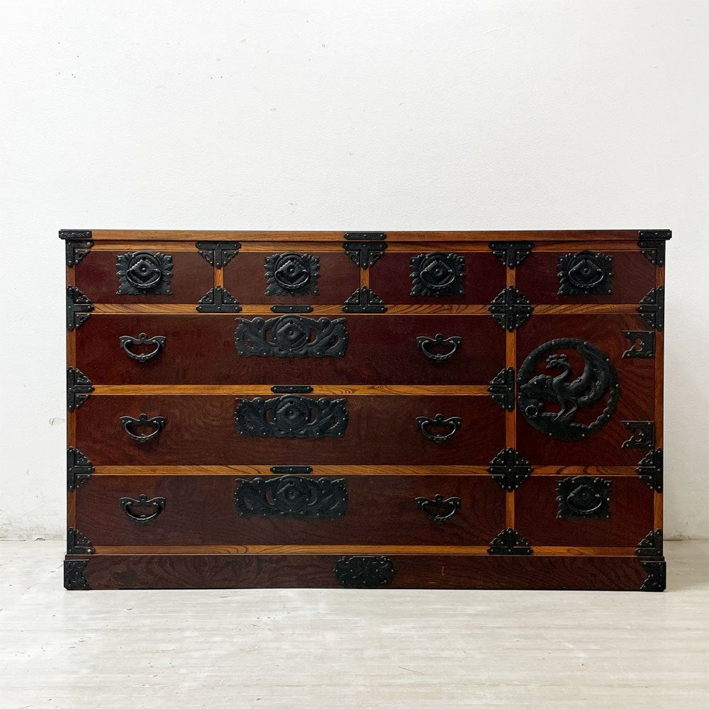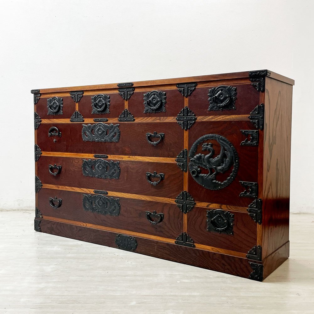 鳳凰 六尺整理箪笥 ワイドチェスト 欅 拭漆 南部鉄器