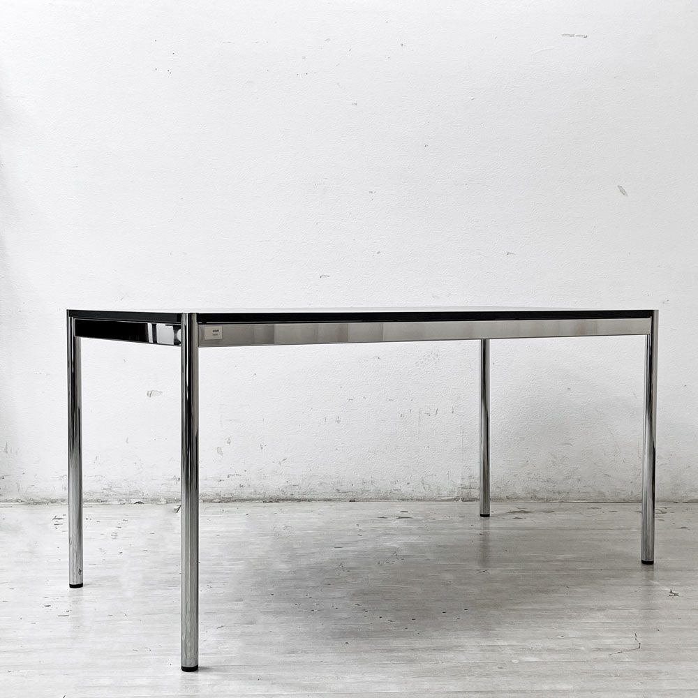 限られたパーツを組み合わせて自由に構成出来るフレキシブルなモジュラー・ファニチャー・システムが魅力の同社の家具。こちらは摩耗や耐熱耐水性に優れた仕様で、ダイニングでもワークスペースでもお使いできるUSMハラーテーブルです。