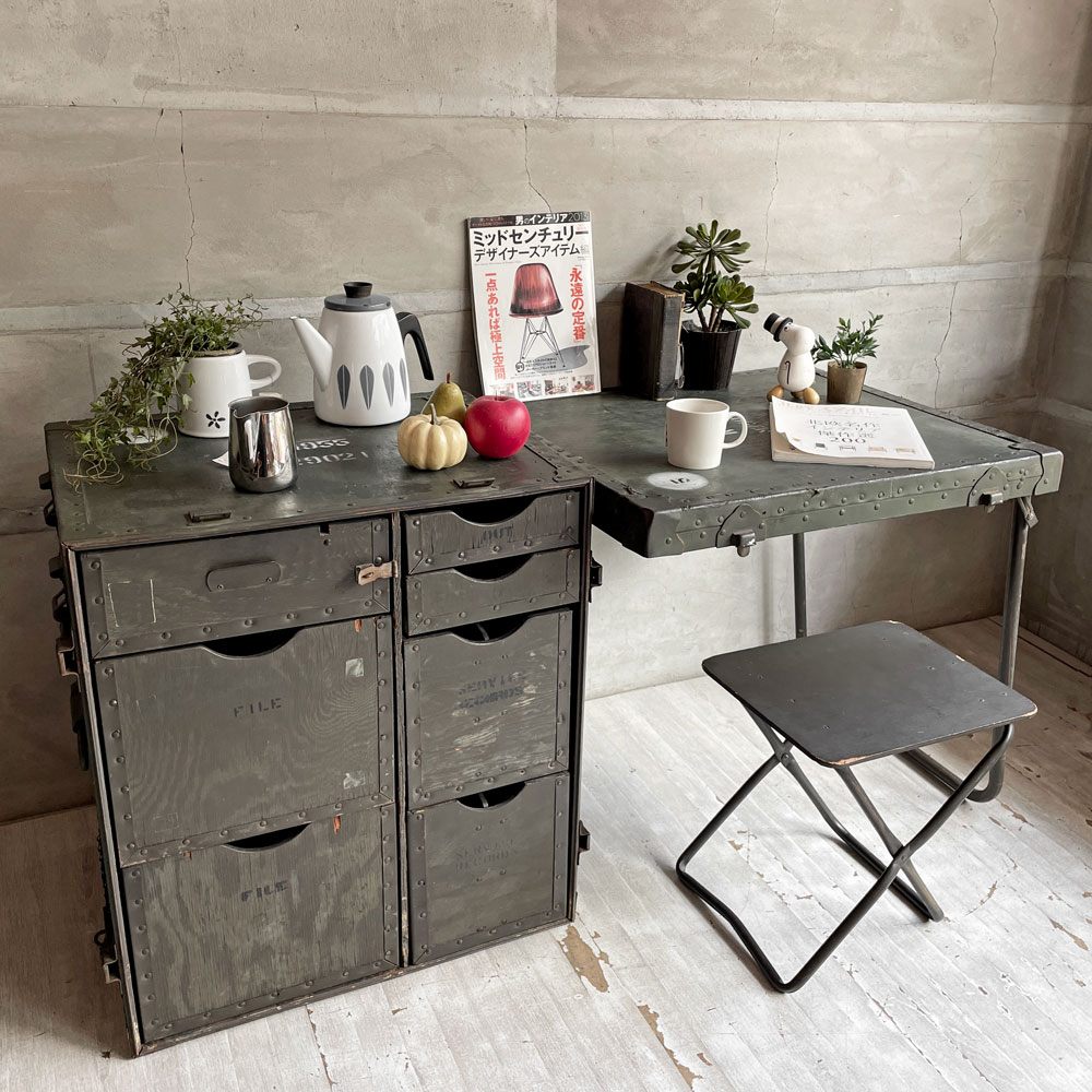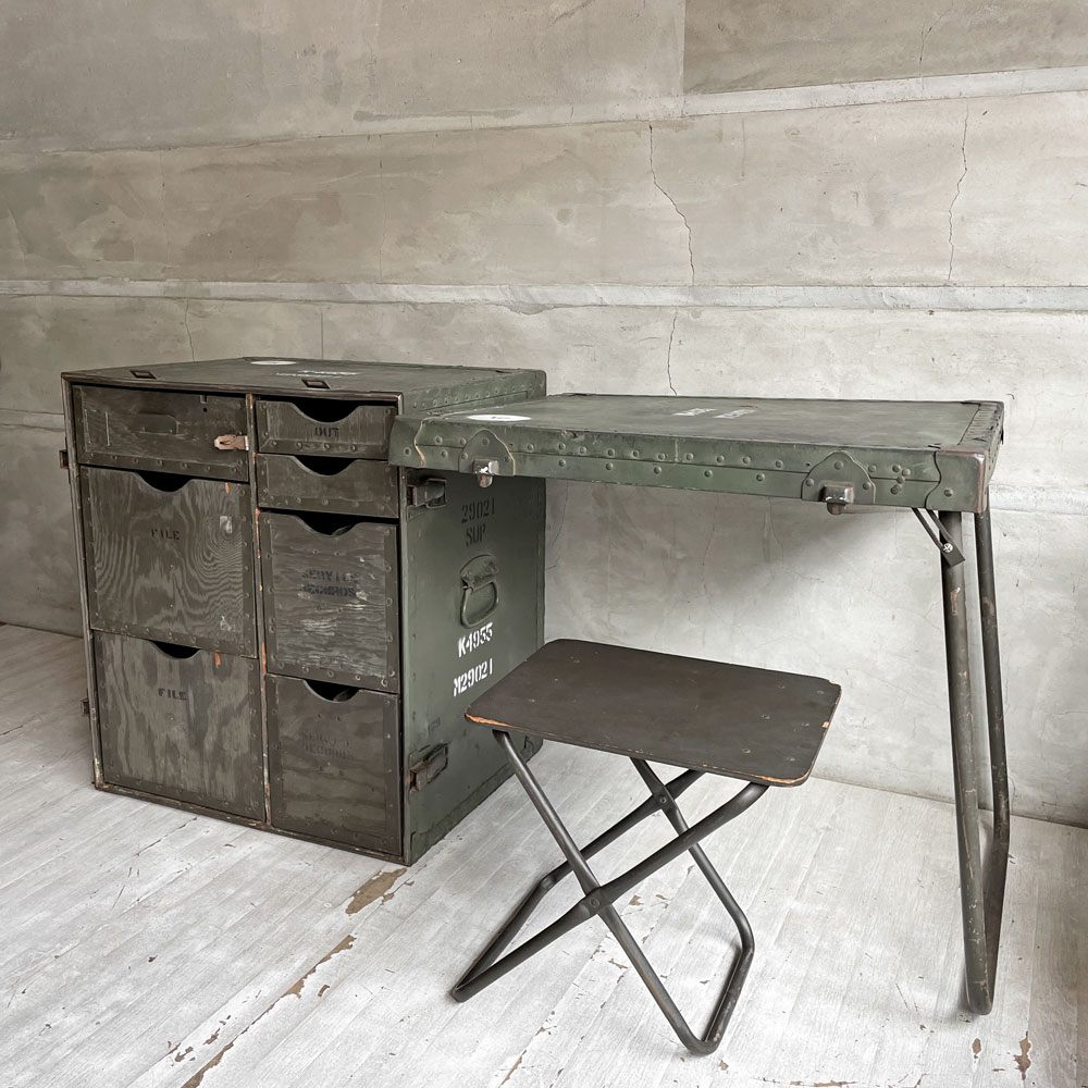 USビンテージ Vintage フィールドデスク フォールディング 中隊デスク チェスト スツール付き ミリタリー サープラス 米軍 US ARMY~日常の作戦会議~