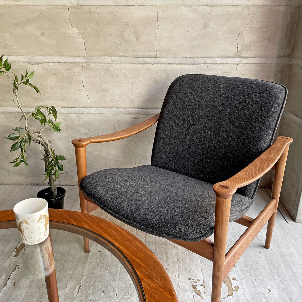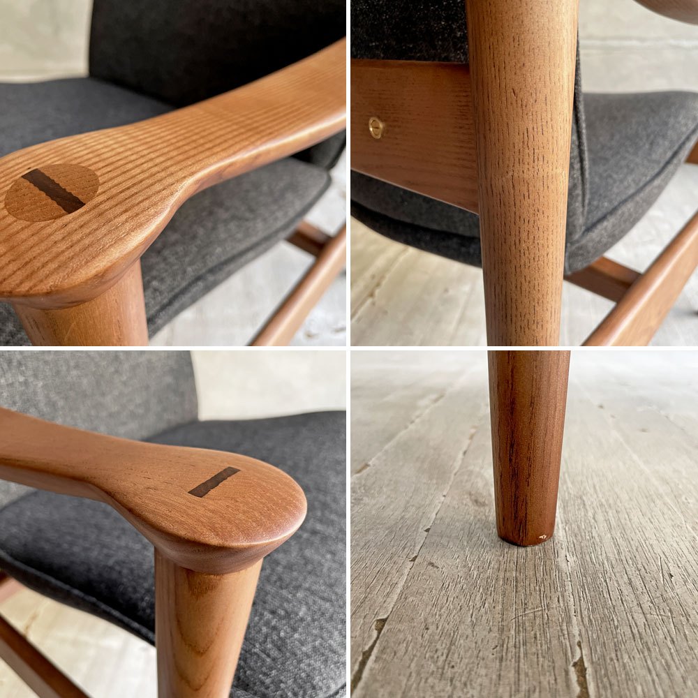 滑らかにカーブを描くアームが、腕に心地良くフィットします。上質さと軽やかな印象を併せ持ち、ゆったりとくつろぐことができるチェアです。