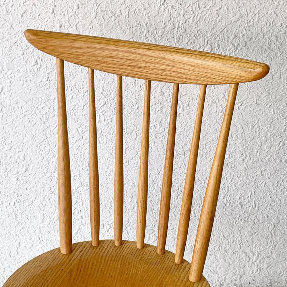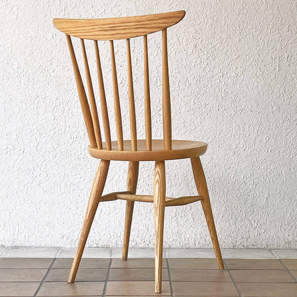 余計な装飾を削ぎ落し、ウィンザースタイルを意識したスッキリとした佇まいで温かみある空間を演出してくれる木製椅子。フレームには、森の木々の中で最も進化した組織構造を持ち、ハッキリとした木目により「森の王」の異名を持つオーク無垢材を使用しています。