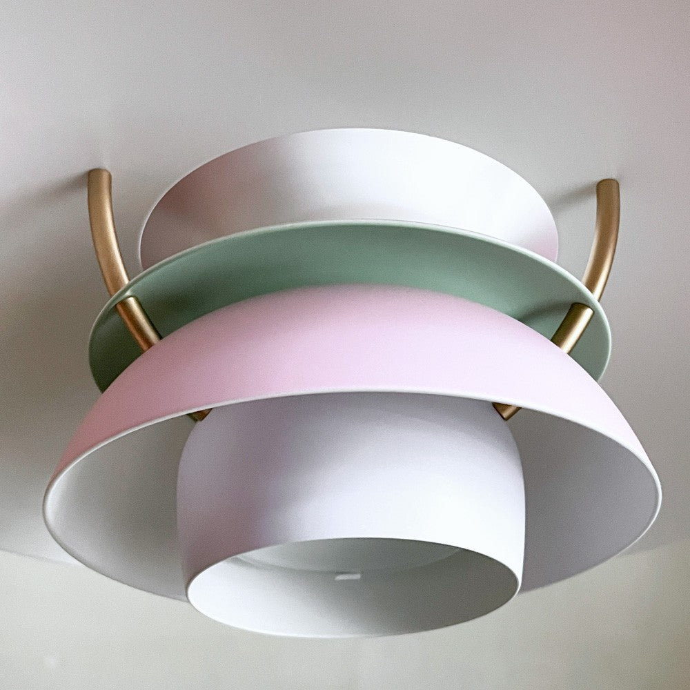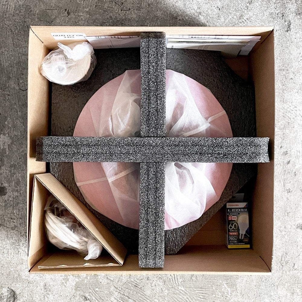 上から下へ淡くなるローズのグラデーションカラーにシェード内部のグリーンカラーがアクセントとなり北欧デザインらしい、シックで上品な温かい印象を高めます。