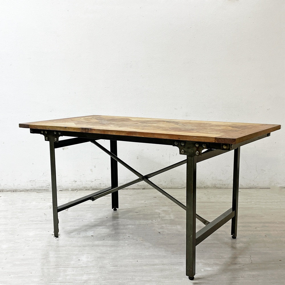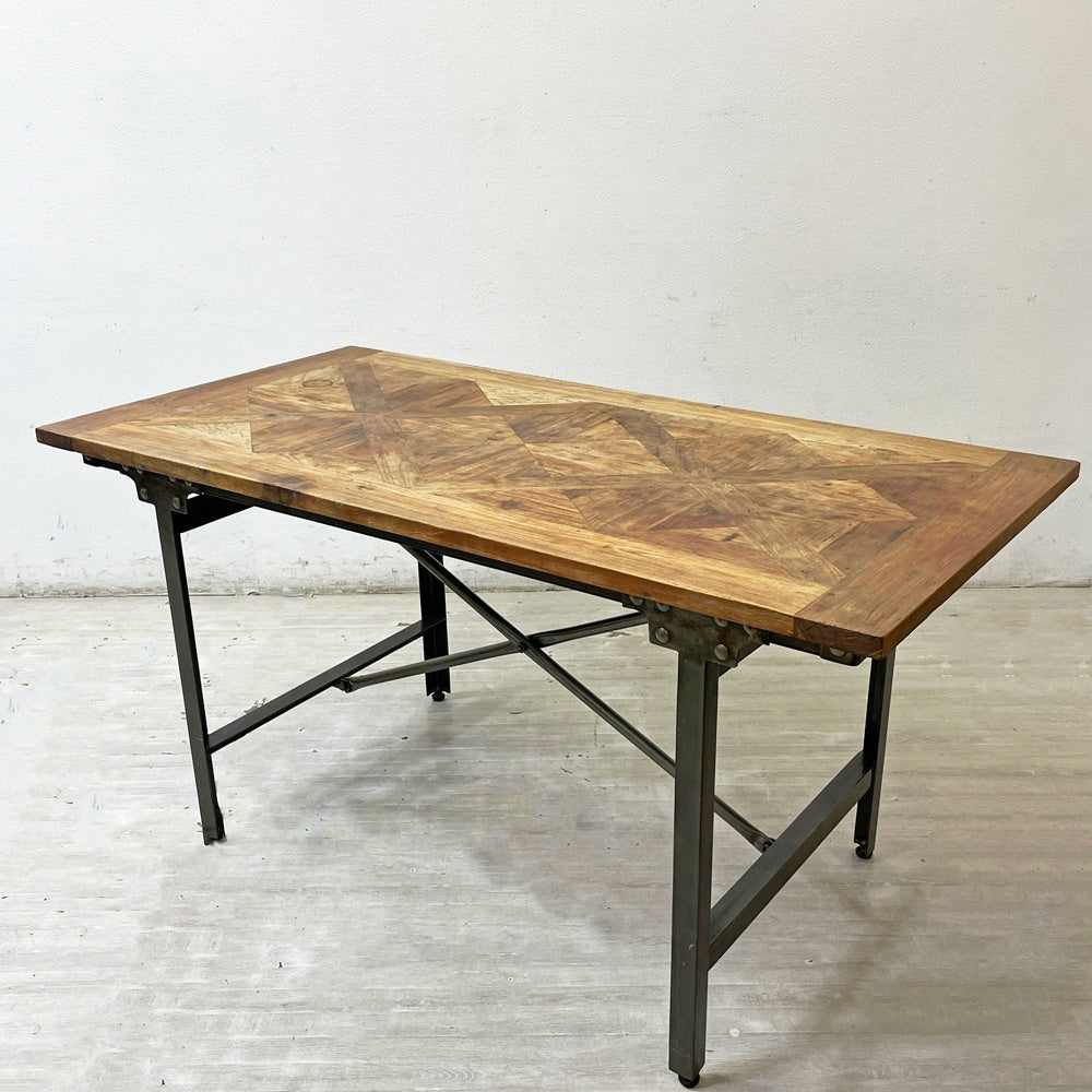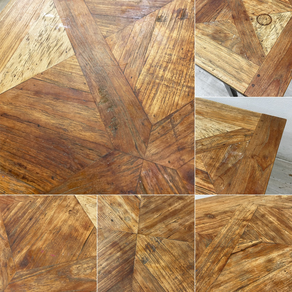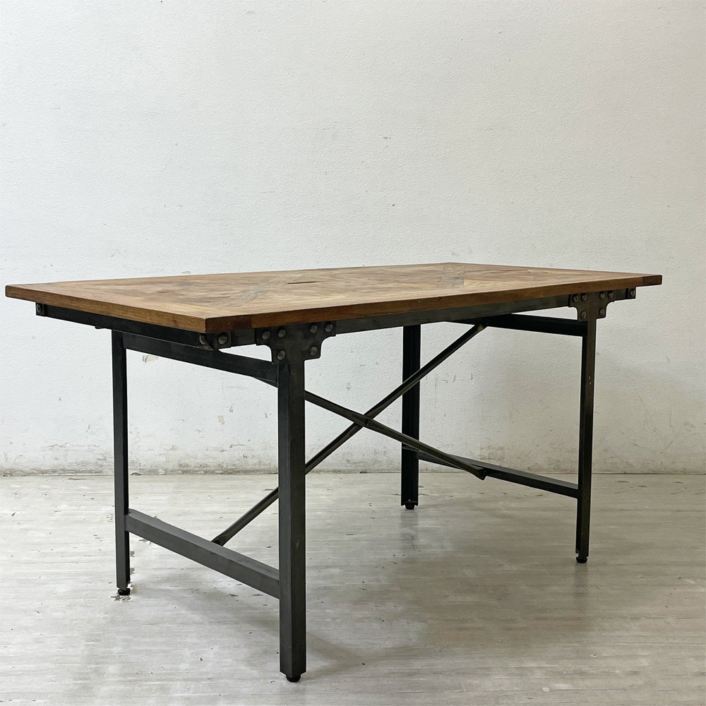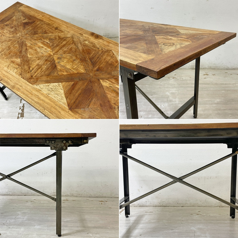 ギャラップ GALLUP リクレイムド チーク ダイニングテーブル アーガイル柄天板 パーケットトップ アイアンレッグ インダストリアルデザイン ●