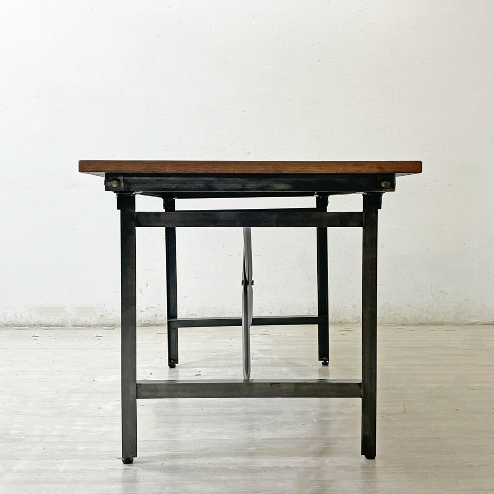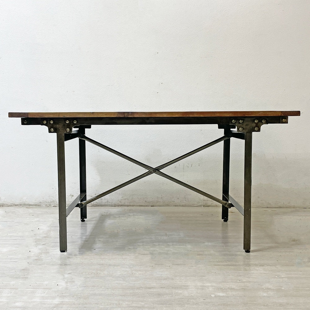 リクレイムド チーク ダイニングテーブル アーガイル柄天板 アイアンレッグ チーク古材