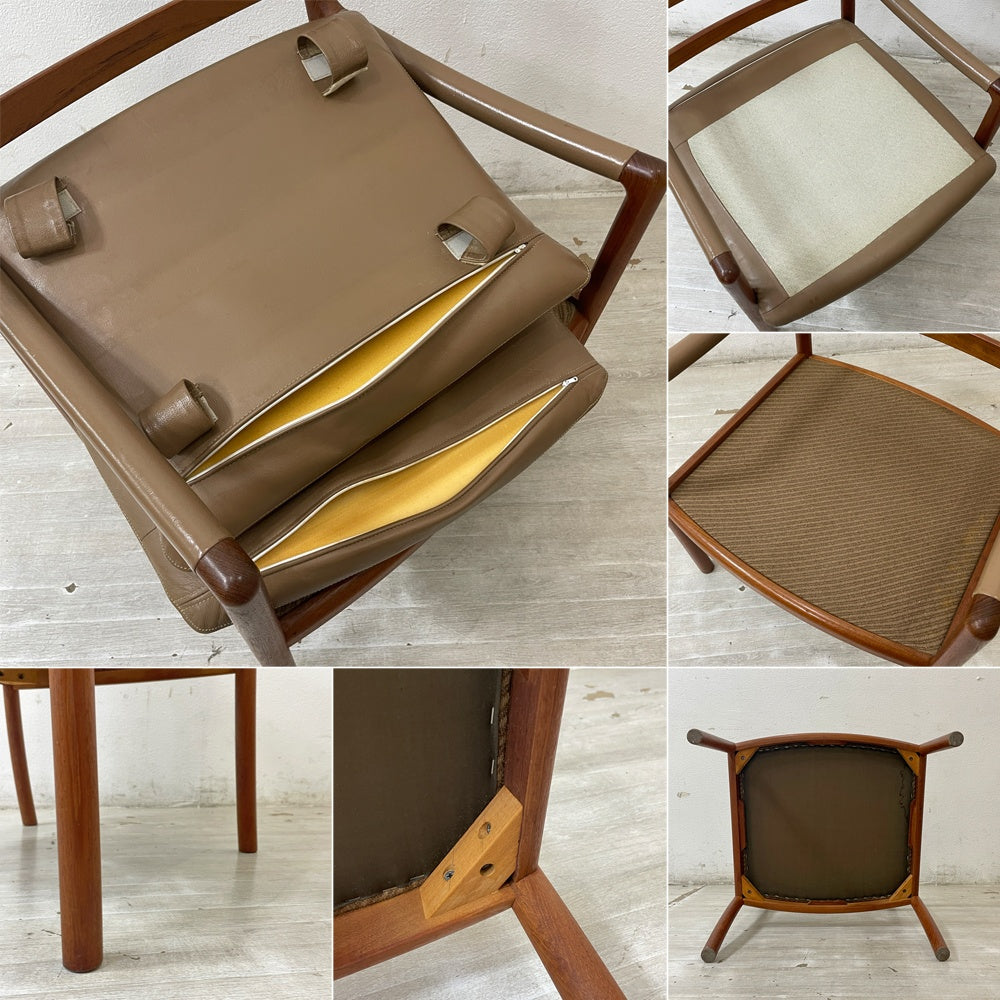 日田工芸 Hita Craft マキシム maxim アームチェア チーク材 ダイニングチェア レザー ラウンジチェア ジャパンビンテージ 北欧スタイル A ●