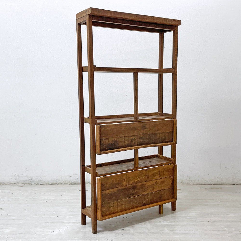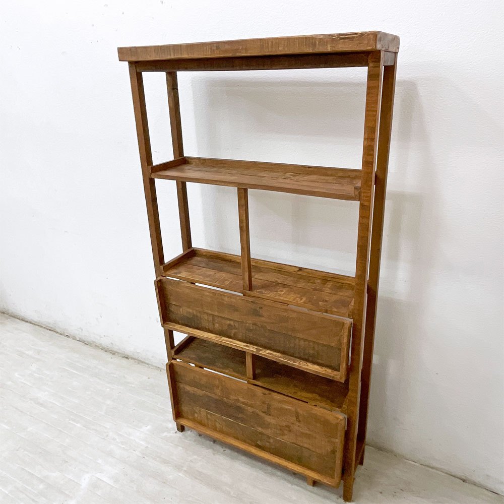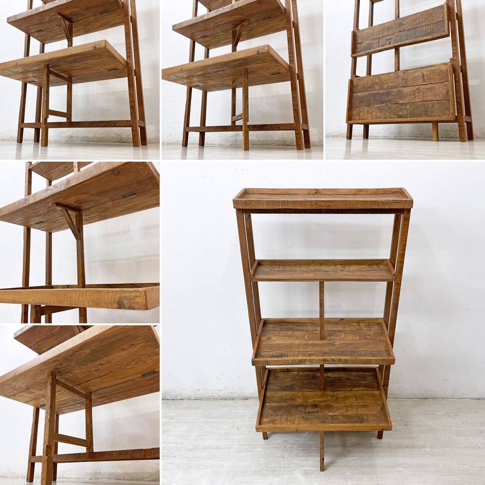 ビンテージスタイル Vintage style 古材風 シェルフ ラック 折り畳み式棚板 アジアンスタイル ●