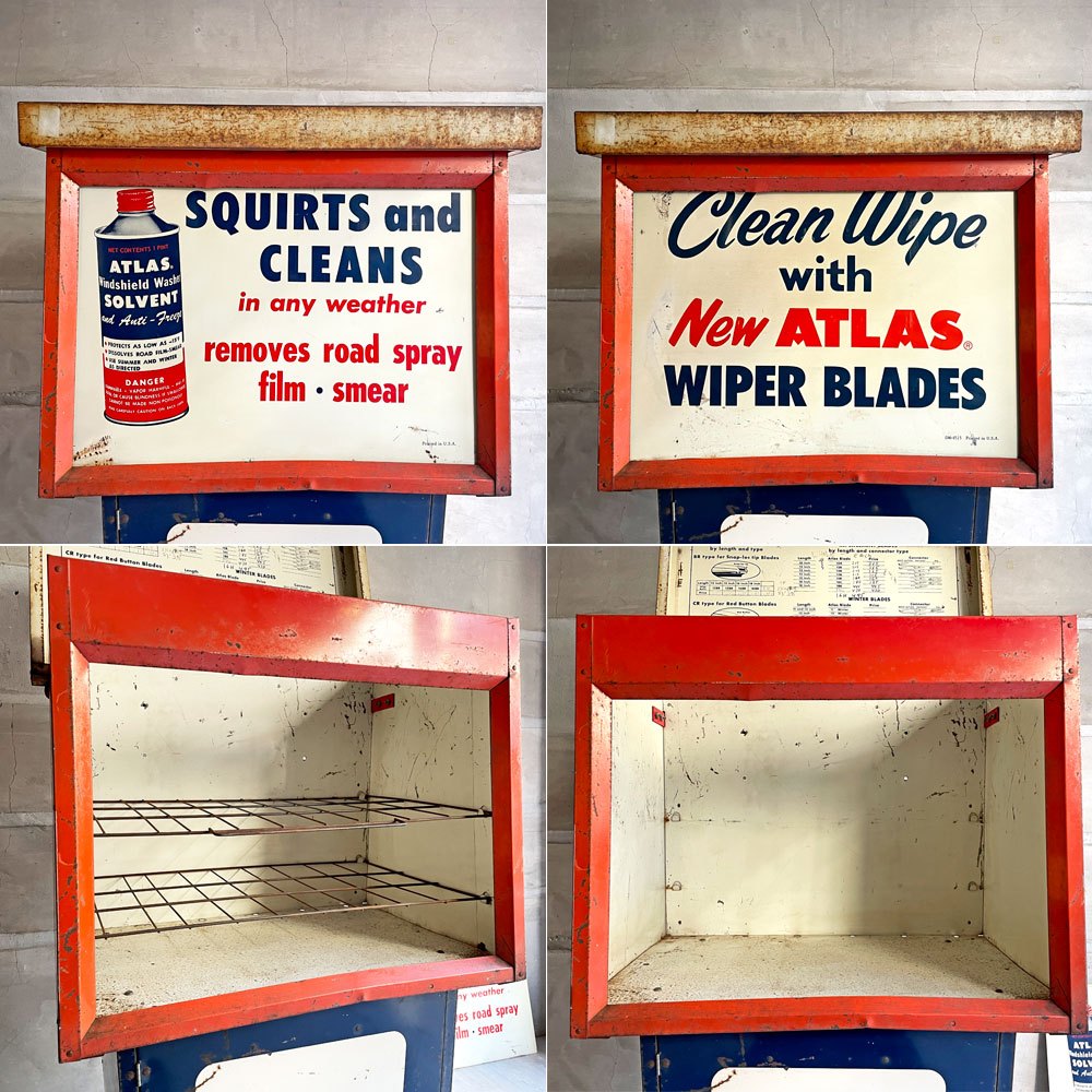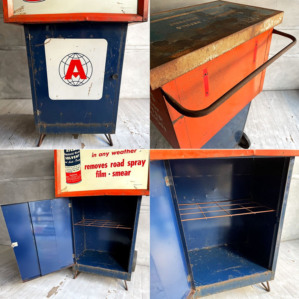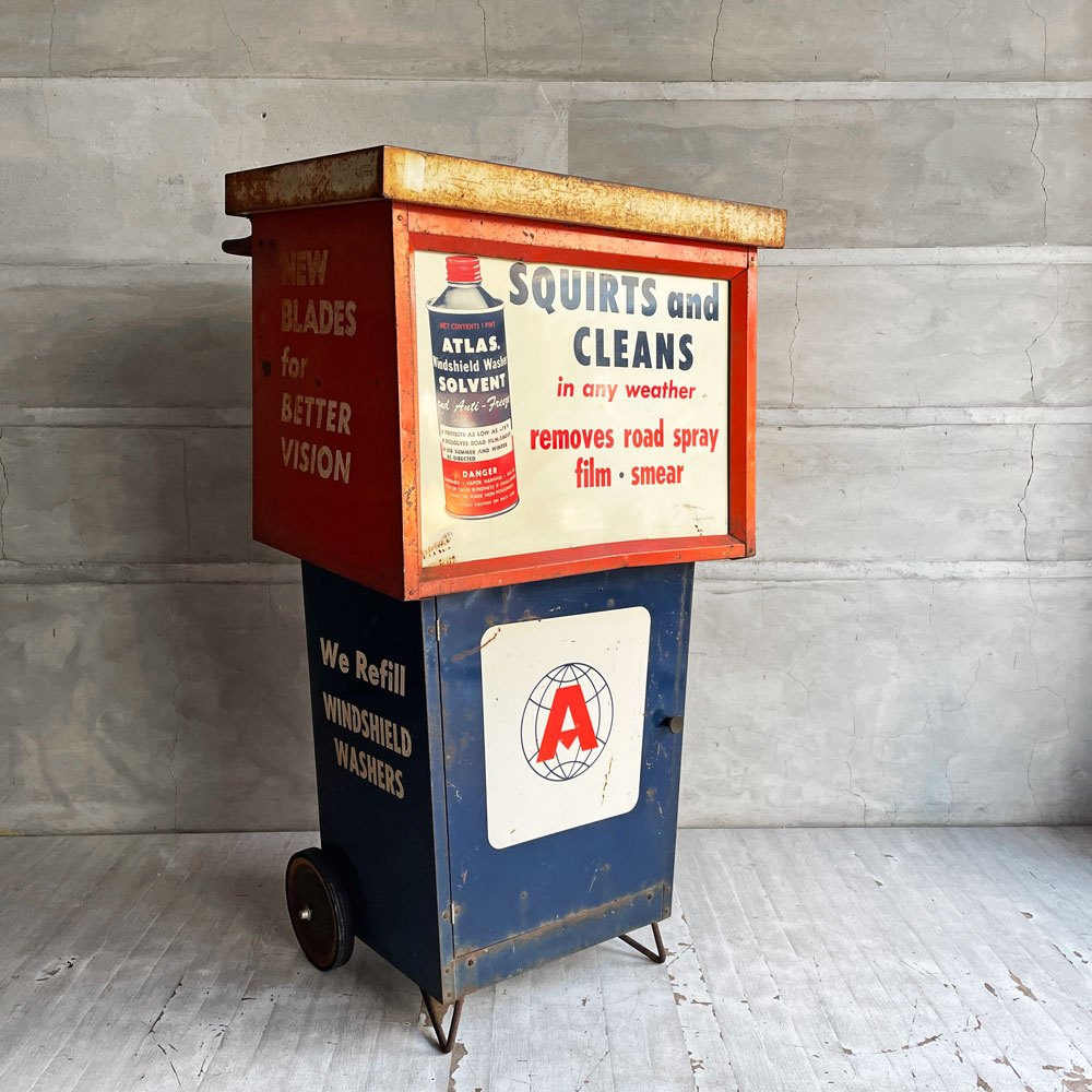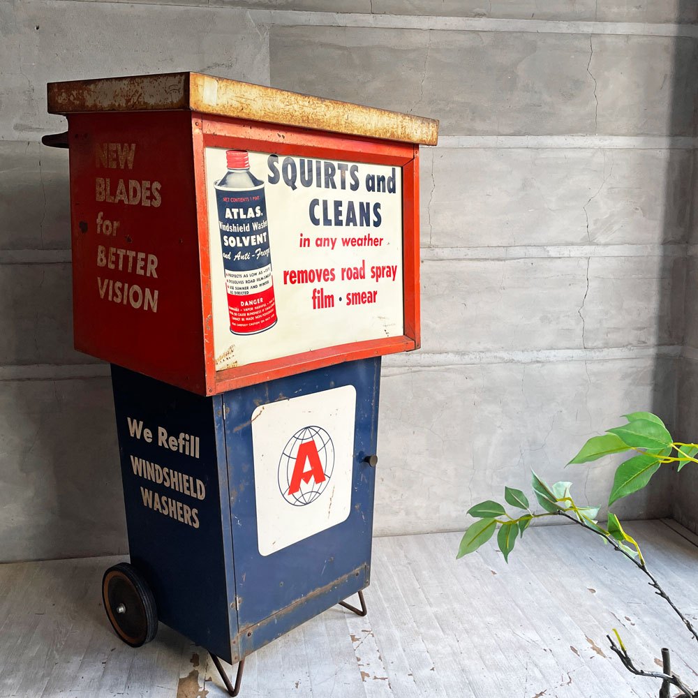 USビンテージ Vintage アトラス社 ATLAS ウィンドウォッシャー液用ディスプレイスタンド ディスプレイキャビネット カートワゴン 店舗什器 インダストリアル ♪