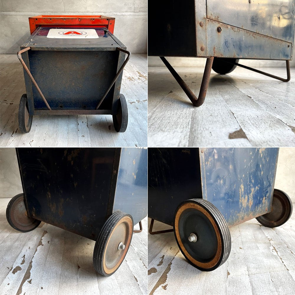 コチラのお品物はビンテージ品となります。使用・経年に伴う傷や擦れ、取り切れない汚れやサビ、ペイントロスや塗装剥げ、凹みや歪みなどがございます。古いお品物となり経年なりの使用感はございますが、キャスターの動きもスムーズであり、ご使用に問題となるようなダメージなどもございません。ビンテージ品ならではの風合いを存分にお楽しみ頂けるお品物となっております。