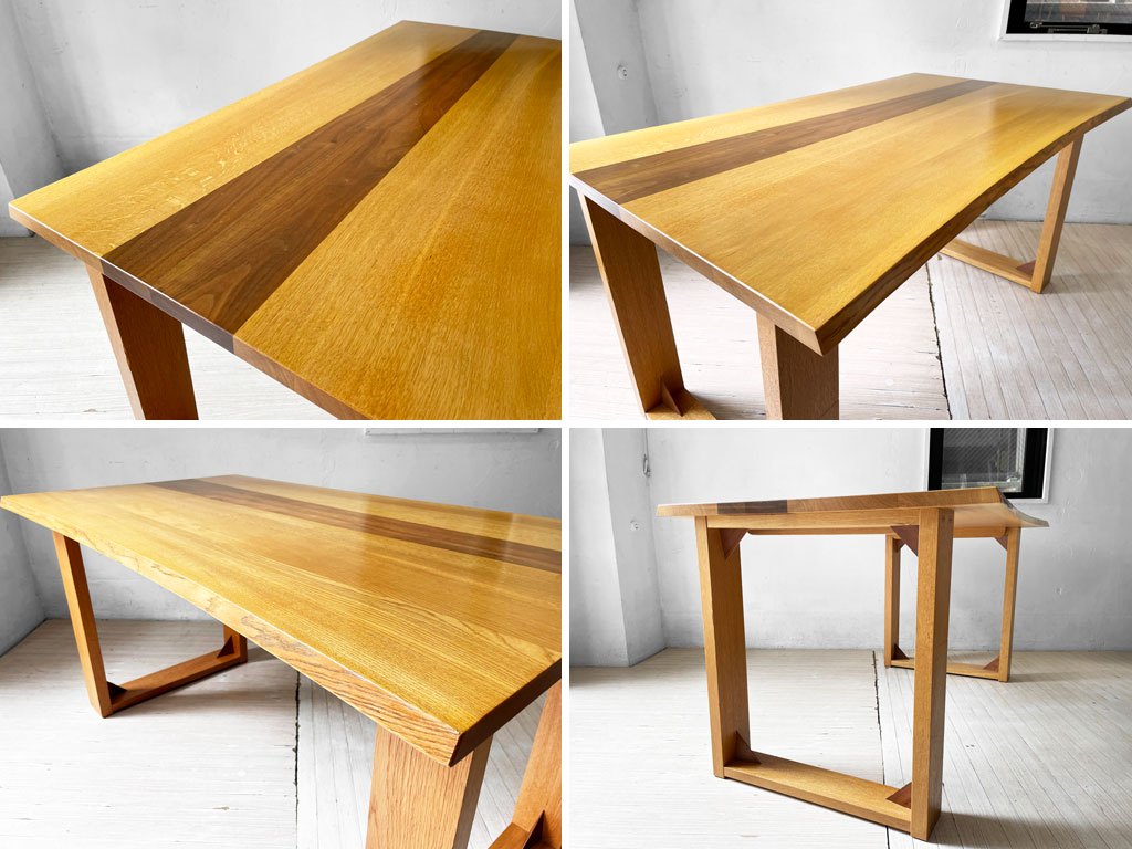 日進木工 NISSIN ホワイトウッドシリーズ CARVE WOT609 ダイニングテーブル オーク無垢材 x ブラックウォールナット無垢材 飛騨家具 廃番 ★