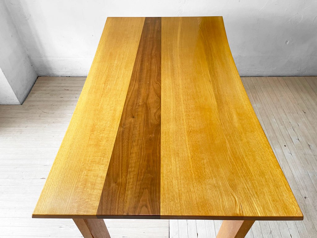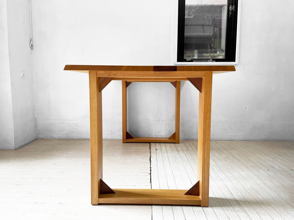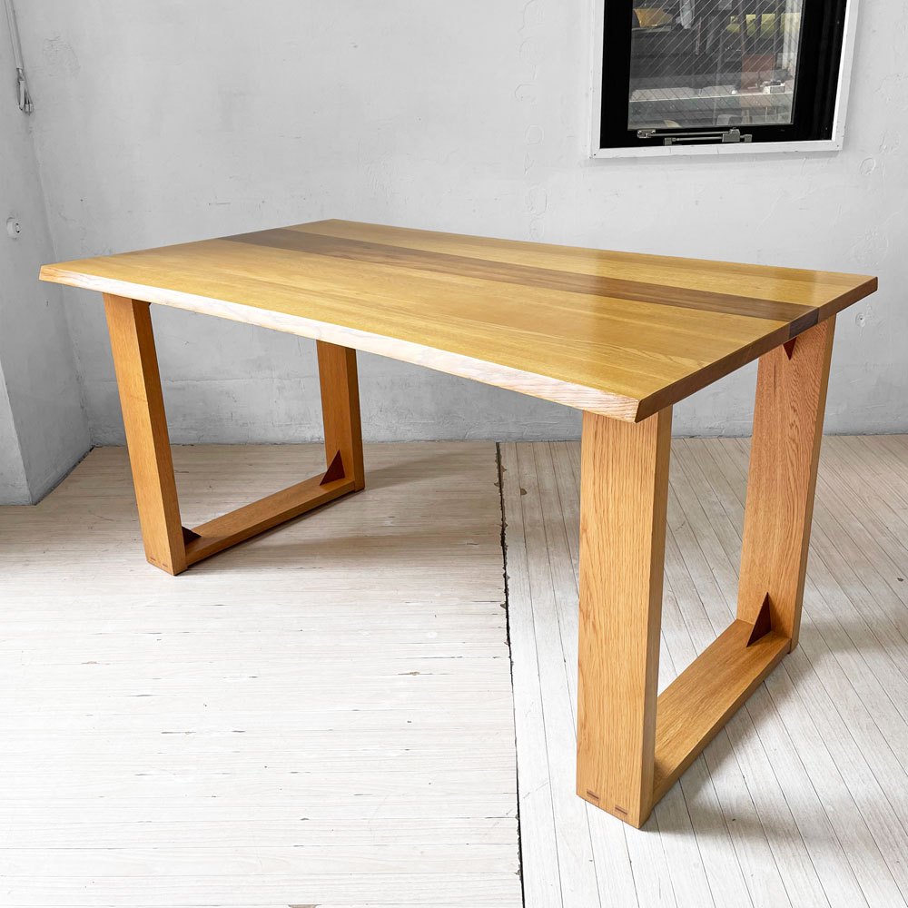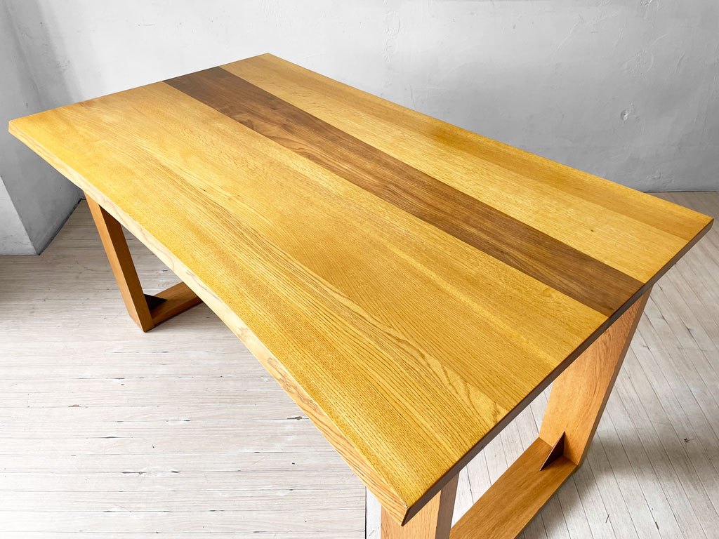 こちらは、オーク無垢材の天板にブラックウォールナット材を組み合わせたダイニングテーブル。