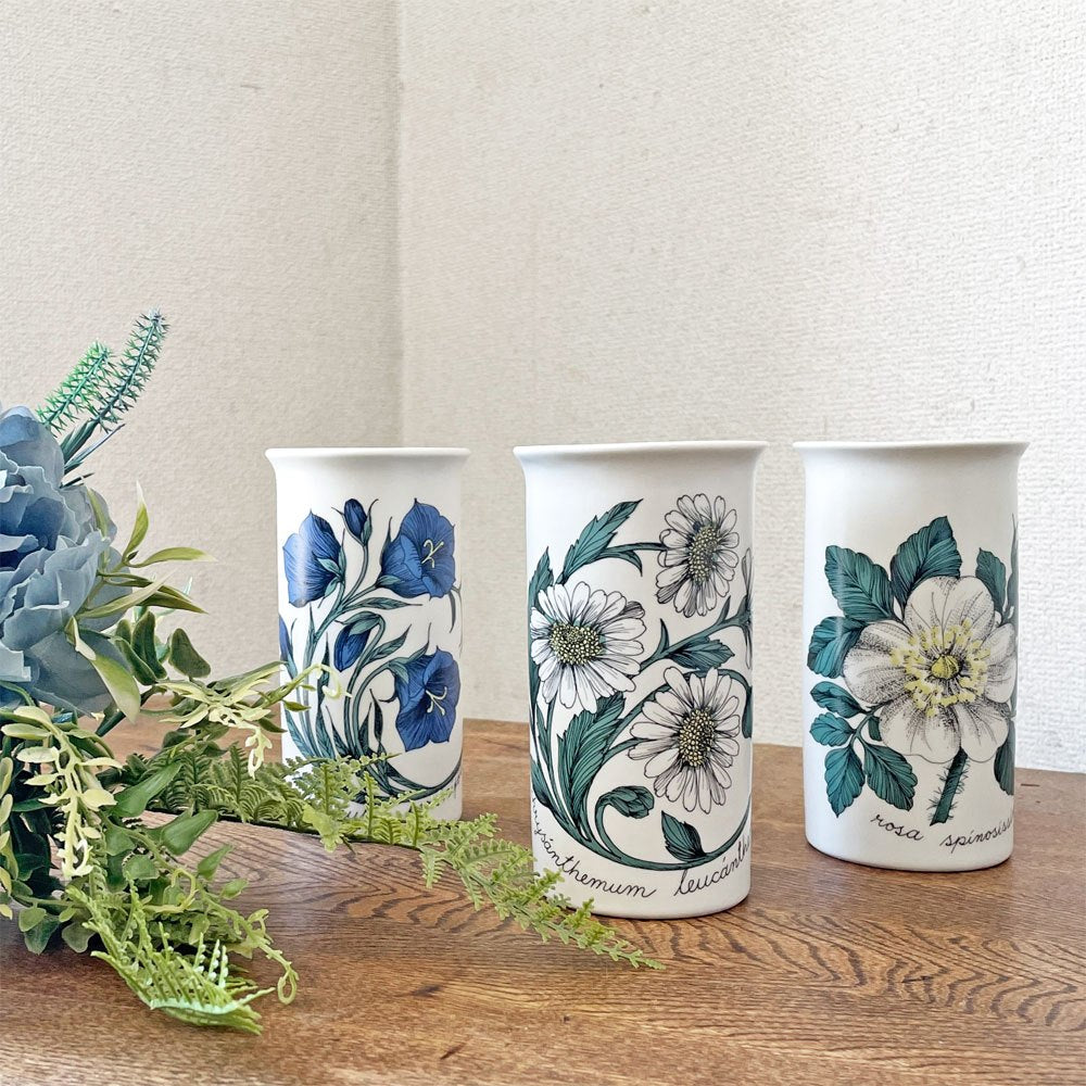 アラビア ARABIA ボタニカ Botanica フラワーベース H14cm ロサスピノシシマ rosa spinosissima & モモノハキキョウ campanula persicfolia & フランスギク chrysanthemum leucanthemum エステリ・トムラ 北欧ビンテージ ~ アラビアの植物図鑑 ~