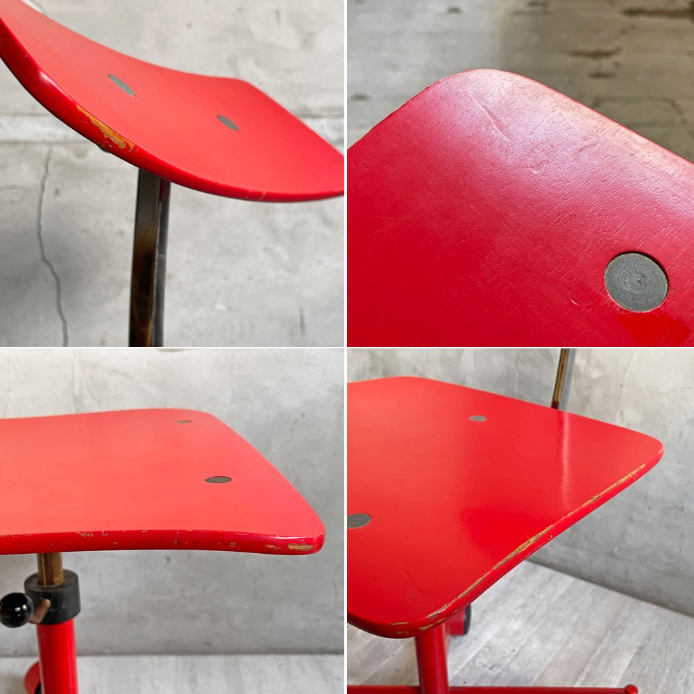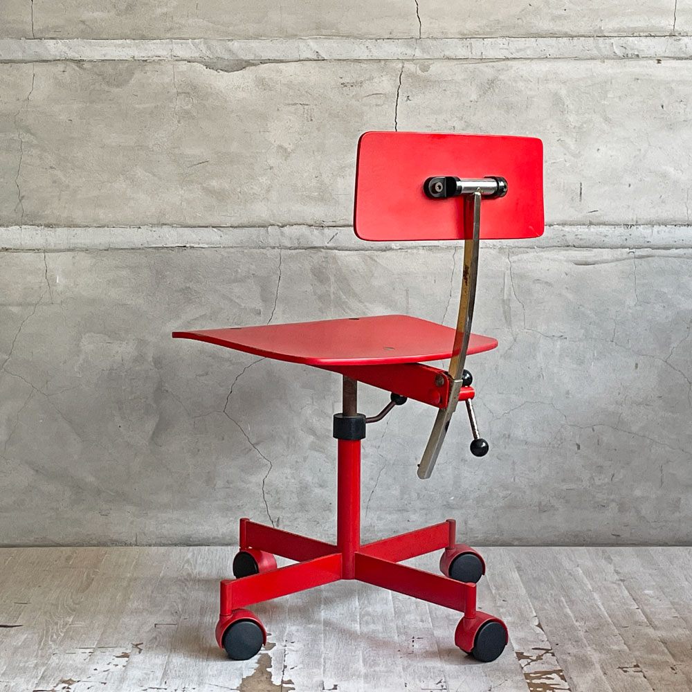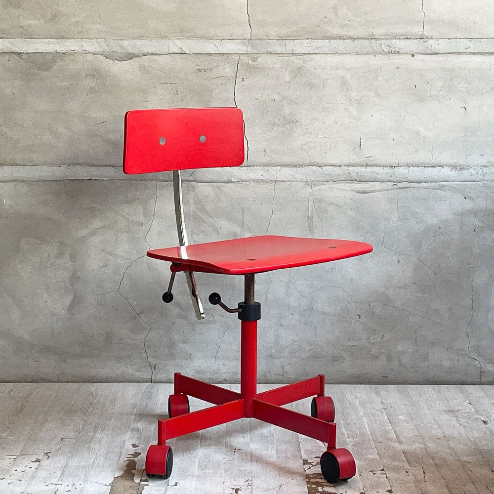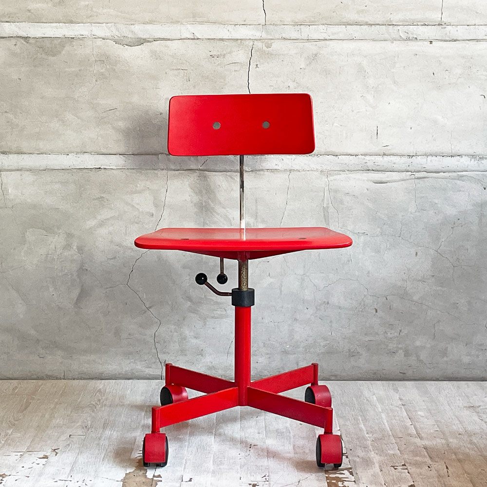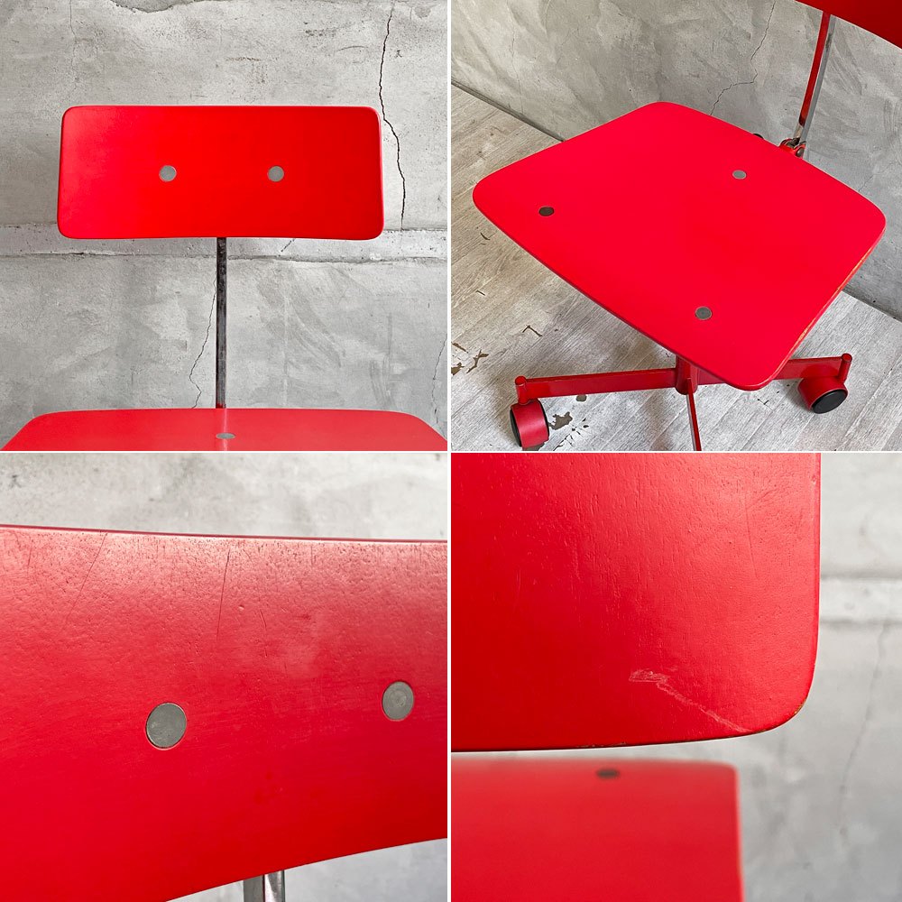 Kettel&Villadsen ケヴィチェア KEVI デスクチェア レッド ミニサイズ 旧4本脚 キャスターベース アナログ昇降 ヨルゲン・ラスムセン デンマークビンテージ ♪