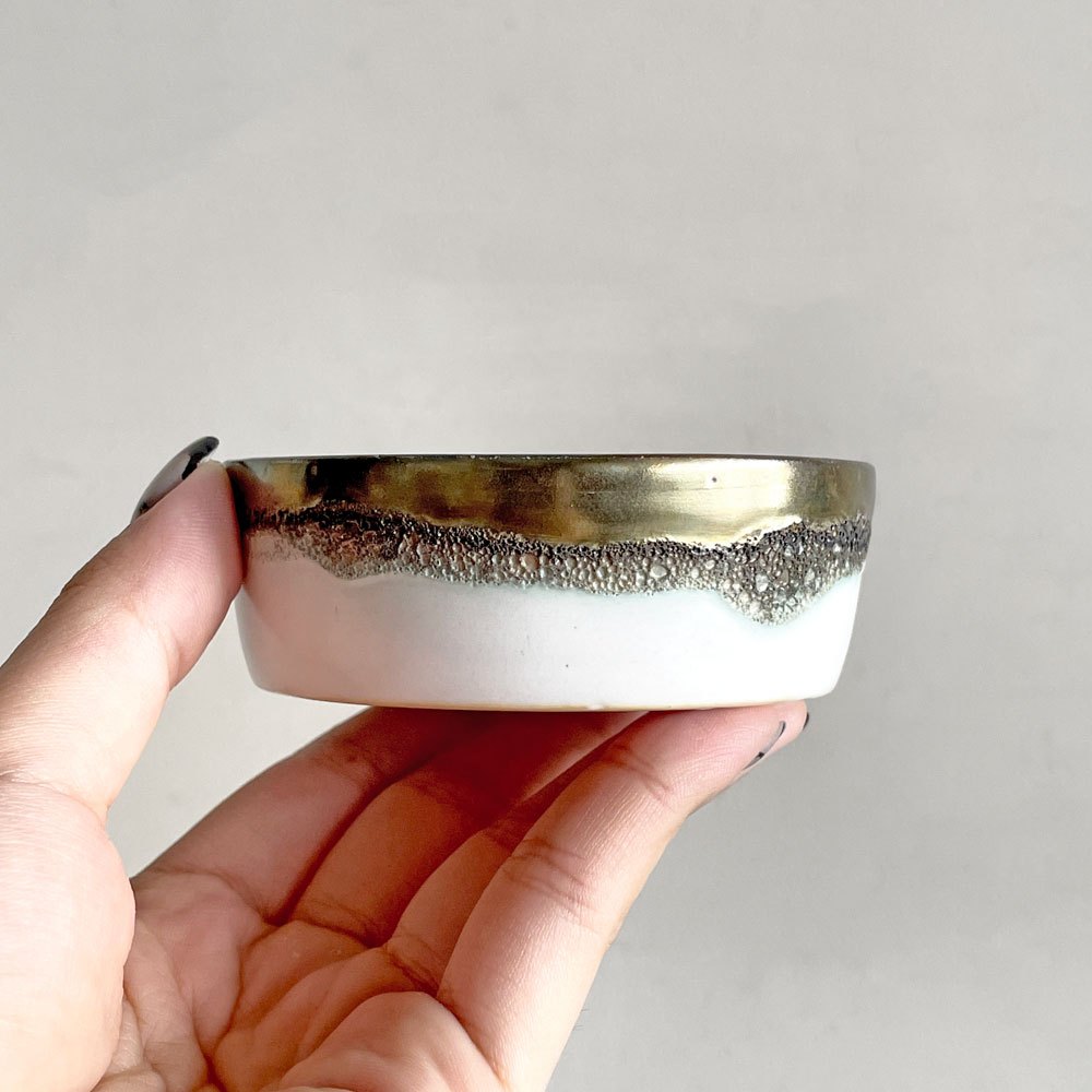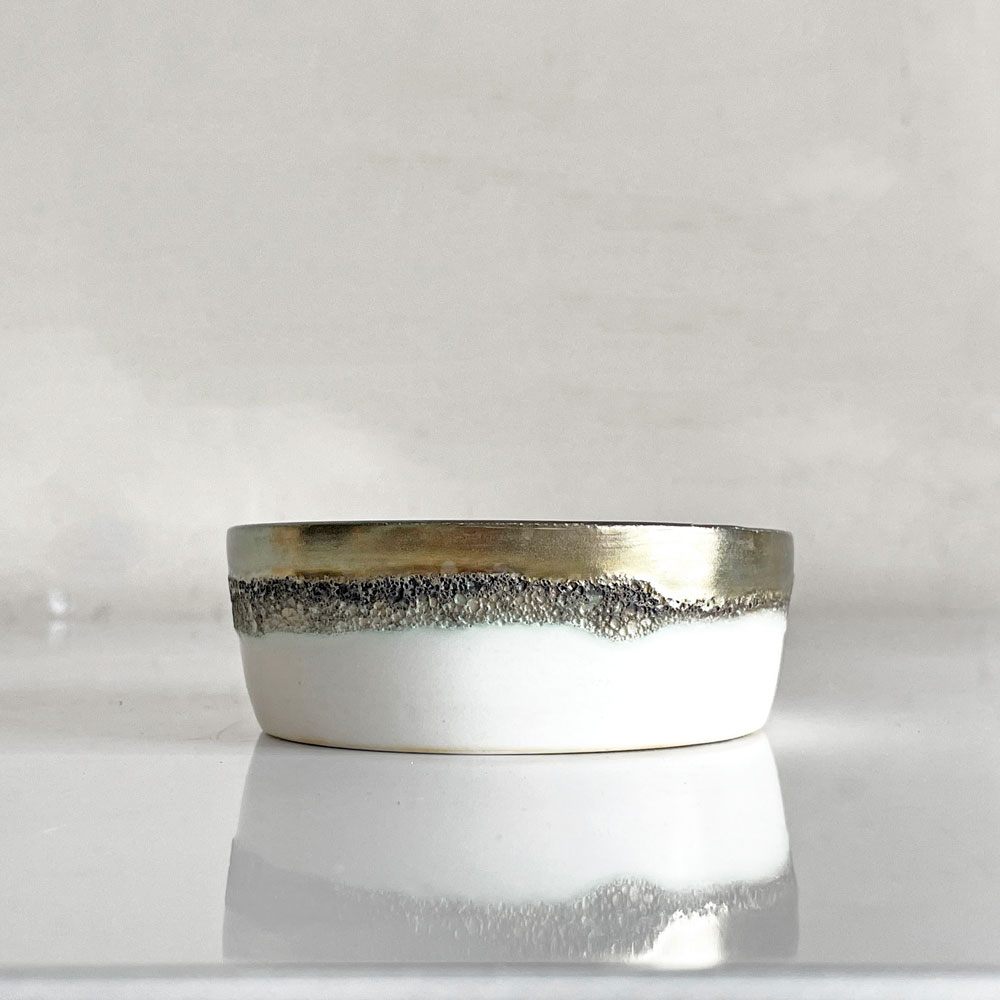福村龍太 白銀彩 小鉢 小皿 半磁器 Φ9×H3cm 日月窯 陶芸 現代作家 ■