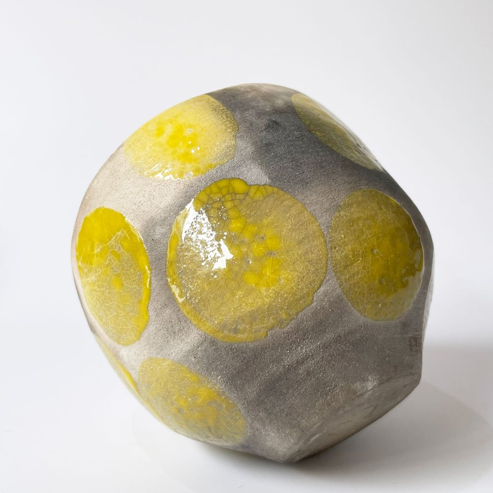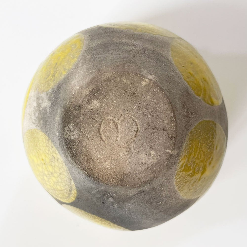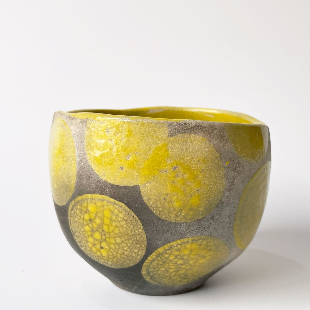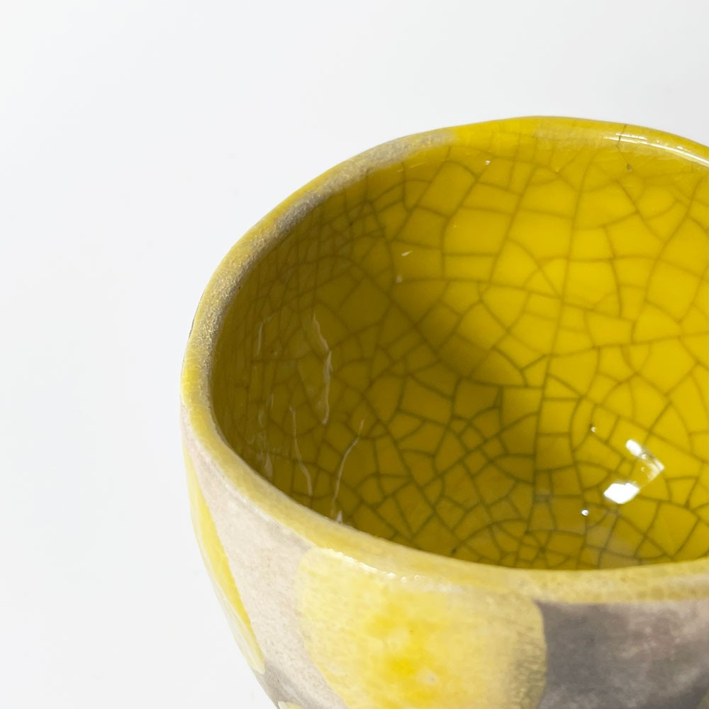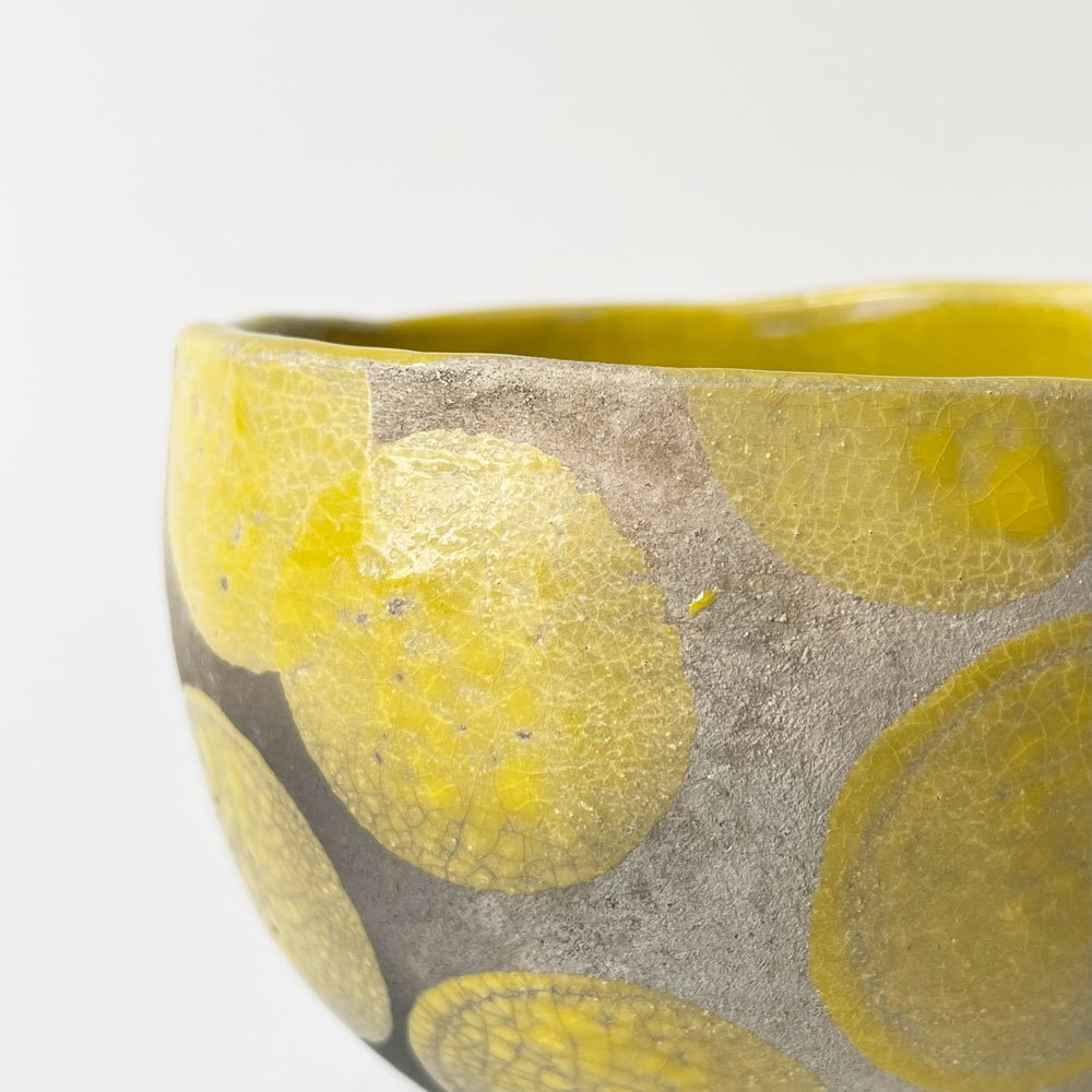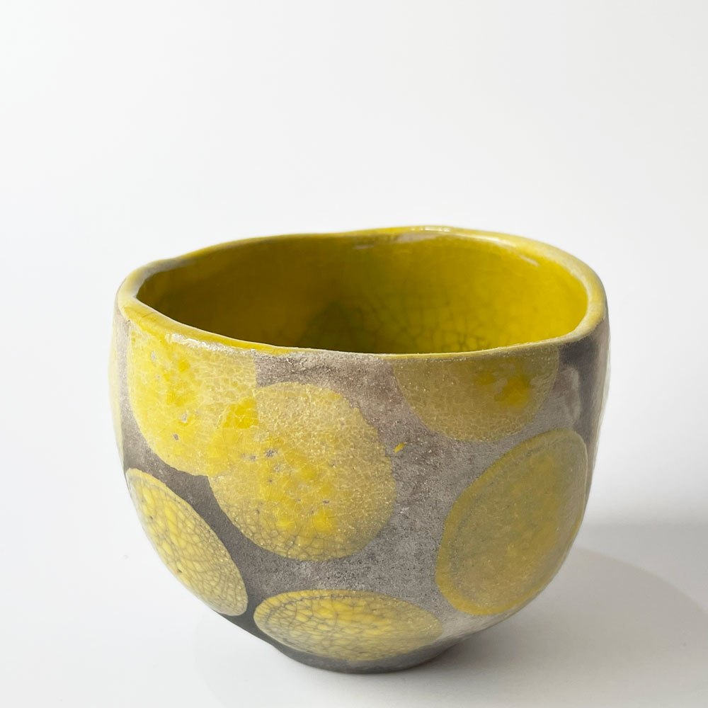 こちらのカップは、深みのあるグレーカラーに蛍光色のイエローカラーで水玉模様があしらわれたデザインです。